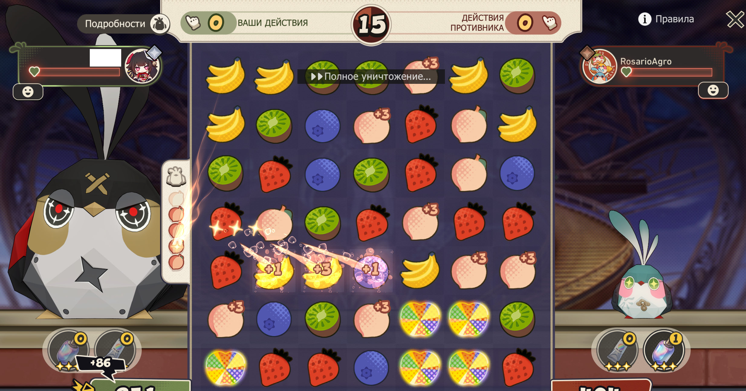 бля, хуева обрезал, но у меня тупа было с первого раунда буквально 1/2 экрана супербомбами, а у чела не юзаных создать бомбы и копирка по 2 штуки. и он проебал вжушк. буквально из-за того что его искорка затроилаили братан просто на поле в виде птицы был читерский вжушк
