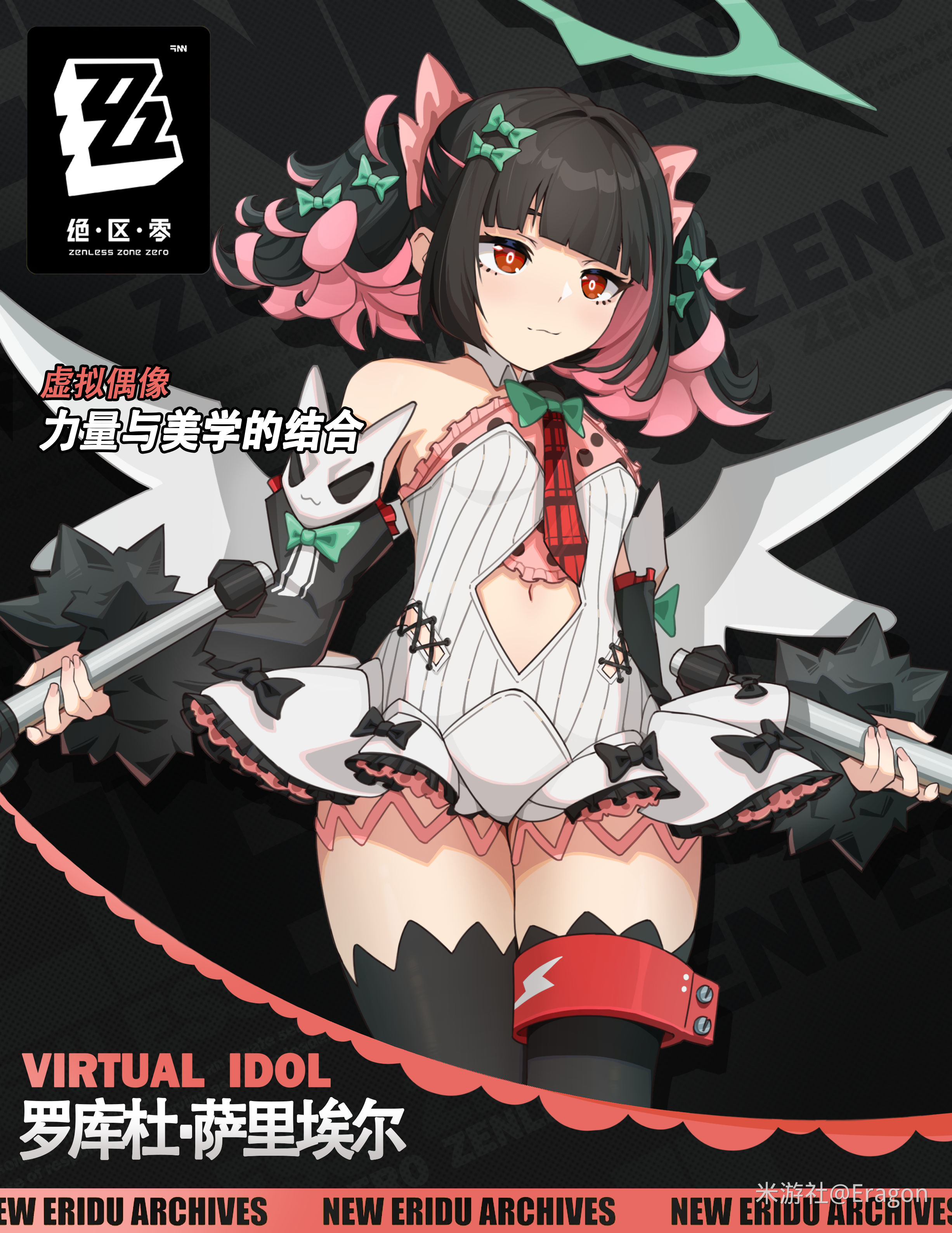 В 2.5 метовая псина, как раз в пару к Жало. Всё же возможно, либо электро, под меч. Либо физа, под эстетику бело-чёрно-красных чернил. Лёд занят осьминогом. Телефонистка тянет на четвёрку.