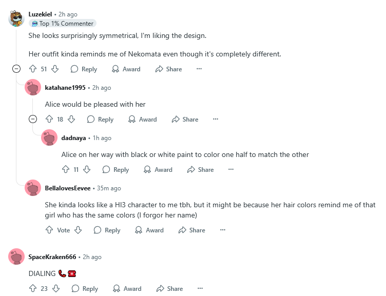 Я хоть ее и не хуесосил, но не понял удивления. Сразу было понятна телефонная тематика, провод идет за спину. Какого то откровения не произошло. Надеюсь весело это всё обыграют в анимациях и видосах