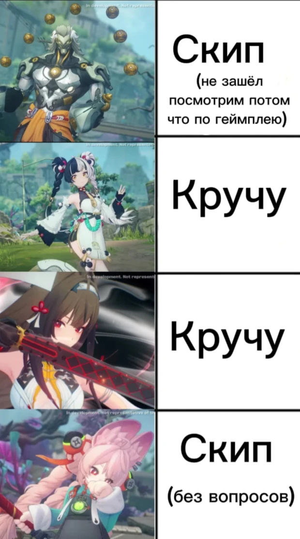 5. Хочется что бы уделялось внимание старым персонажам, стандартным персонажам S-ранга и A-ранга. Я хотел бы, что бы они получали геимплейные обновления, в связи с тем что боевая система и сложность в игре постепенно прогрессирует.