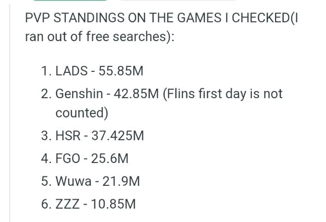 >>5652843 Судя по этой табличке войд хантер 30+ максимум соберет, Мияби уже никому не догнать пик игры прошёл. Если будет меньше 25 то совсем плохо для игры. Коза вероятно в районе 20 набрать сможет. Итого проходной патч 10 средний 15 выше среднего 20+ патч с имбой 30 такой вероятно будет зенлесс в будущем если панамка будет всё правильно делать.