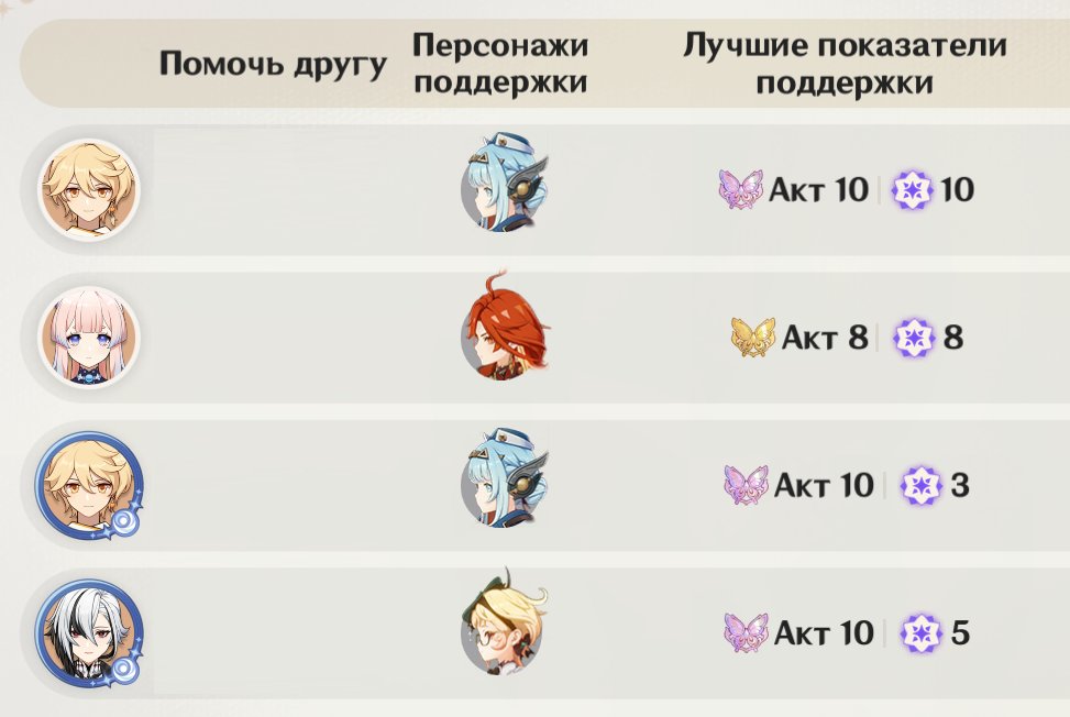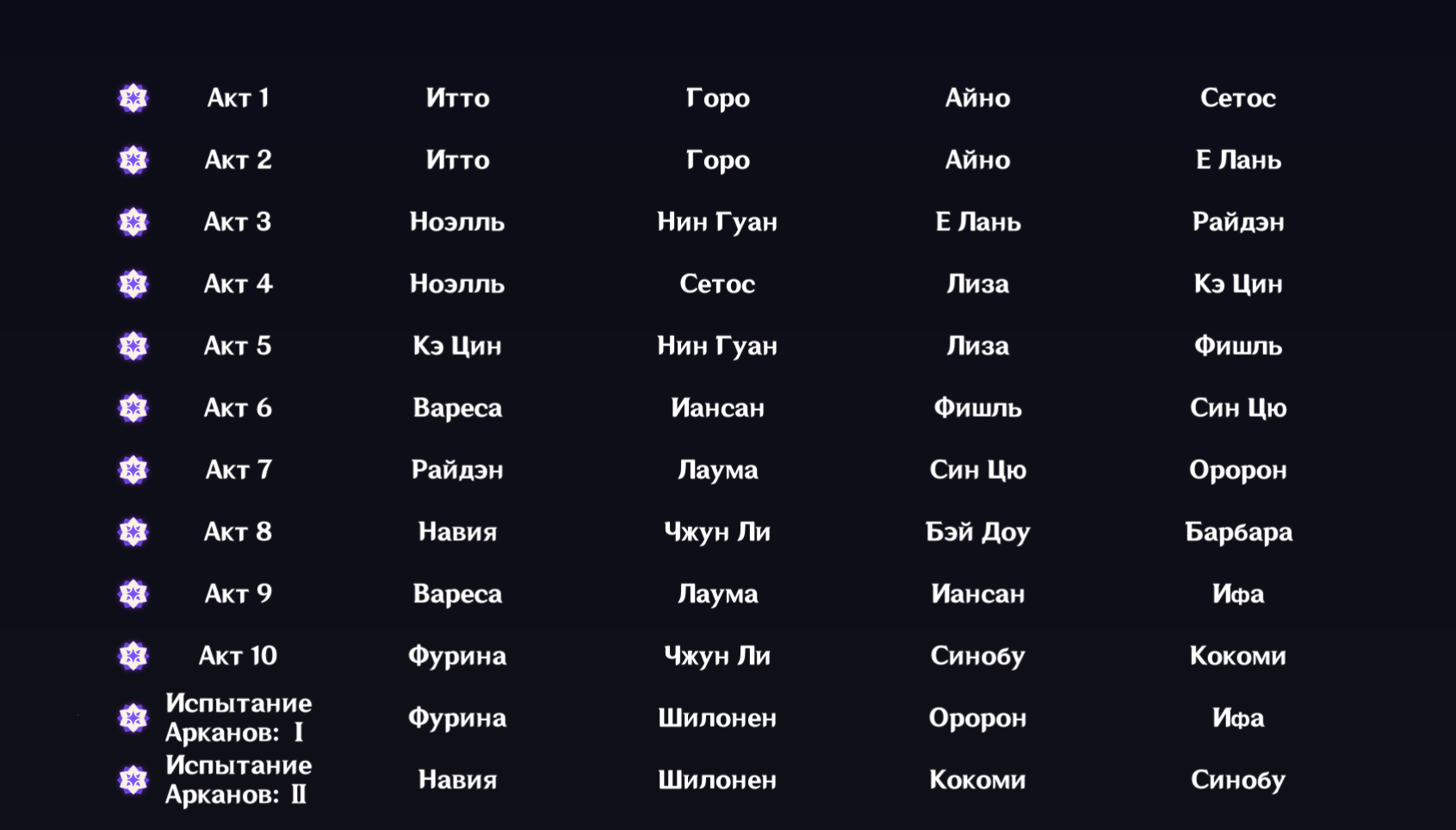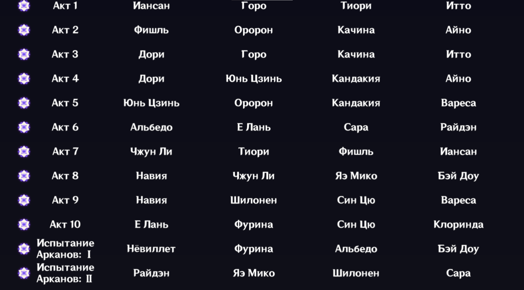 ✦ Показать персонажей картинкой https://akasha.cv/ ∙ https://enka.network/ ∙ Гайды https://t.me/genshin_academy/https://keqingmains.com/