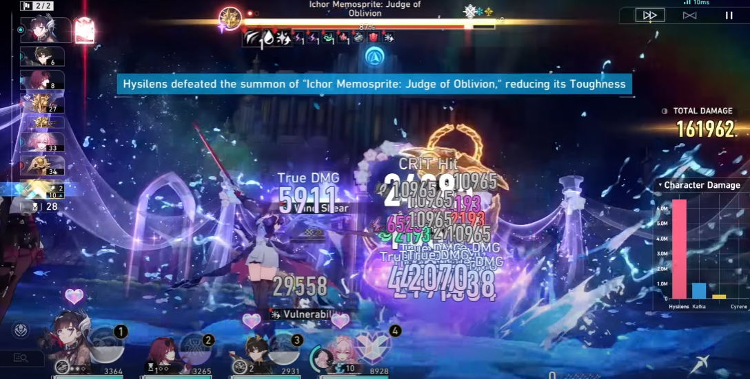 Судя по видосу от кириенты вообще ноль импакта в команде, она больше для флекса и свистеперделок. Но с количества хп я конечно выпал - казуальные лям дамага, отнимают 5% хп. Я уже если честно хз какой урон считать нормой для EoS1