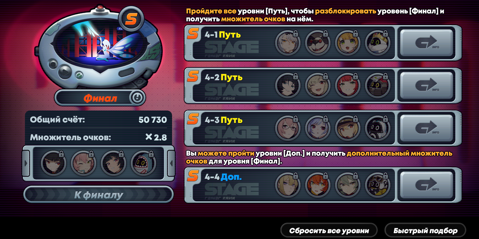 Слешер-гача - это издевательство над игроком. В каком-нибудь ДМЦ ты получаешь SSS - и ты пачкаешь себе трусы коричневым в процессе и белым по итогу, потому что единственное, что там на результат влияет - твой личный скилл. А тут циферки платные, и даже бесплатный (диски) за не зависящими от тебя обстоятельствами скрыты (рандом) - и тебе еще этим в морду тычут каждый ресет, срезая по 5-10к от счетчика