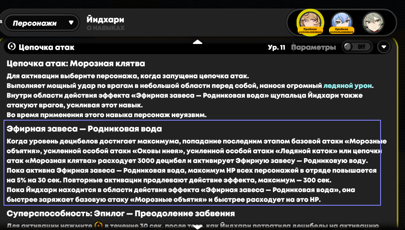 основные моменты, которые я могу отметить после релиза: 1. Любые альтерантивы (кроме бп шарика в уяз) работают плохо по причине постоянных костылей, будь то плохой аптайм/бесполезный сабстат/бесполезная пассивка, но есть еще один моментик (о котором я напишу далее), который максимально обесценивает половину движков на ней, и у вас по факту из полезных остаются только GBO в уяз + 3 шарик)) 2. Ей абсолютно не нужен стат "Восстановление Энергии" (по моему мнению). Если до релиза я думал, что она будет жать Е-шки, давать с них ассисты (которых у неё нету) и заряжать своё состояние Сна, то сейчас же оказалось то, что это её состояние длится чуть ли не половину файта, а для его зарядки вам достаточно нажать Е-шку + 5ый базик. дополнительный пункт. По причине, описанной выше, я считаю, что у вас абсолютно в любом билде диски выглядят как ХП%-ХП%-ХП%, либо даже возможно какие-то криты всунуть на сдачу. Я не вижу никакого смысла в ВЭ в 6-м диске, т.к настолько часто прожимать её Е-шку вам не нужно, а к тому же она еще и не даёт квик ассистов, что я считаю лютым руином.