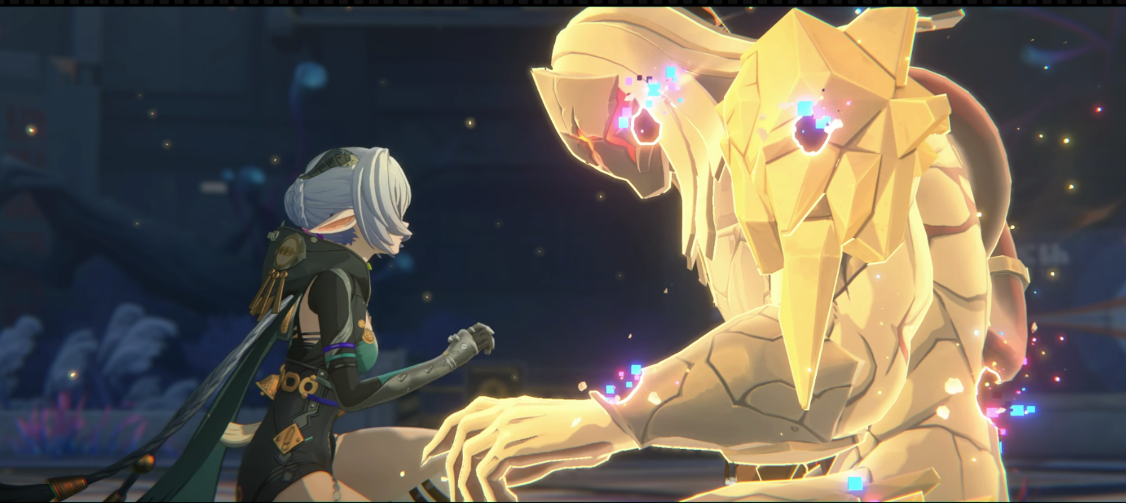 Бля, сюжет этого патча - это просто какая-то квинтэссенция сценарного слопа. Из ниоткуда взявшаяся филлерная деревня, огромное количество пиздежа ни о чем, абсолютно мертвые герои, из которых только коза с манато хоть каким-то характером обладают. Лев гигаунылый, очередной за все хорошее против всего плохого, осьминожка - блевотный вайфукал, который еще при этом до нельзя скучный; я не верю, что говорю это, но даже вывы больше позитивных эмоций у меня вызывала. Плюс игра окончательно превратилась в дерьмовое фентези без правил, где в любой момент может произойти что угодно. У меня мозг натурально в кашу превращается по мере прохождения, настолько это блять плоха.