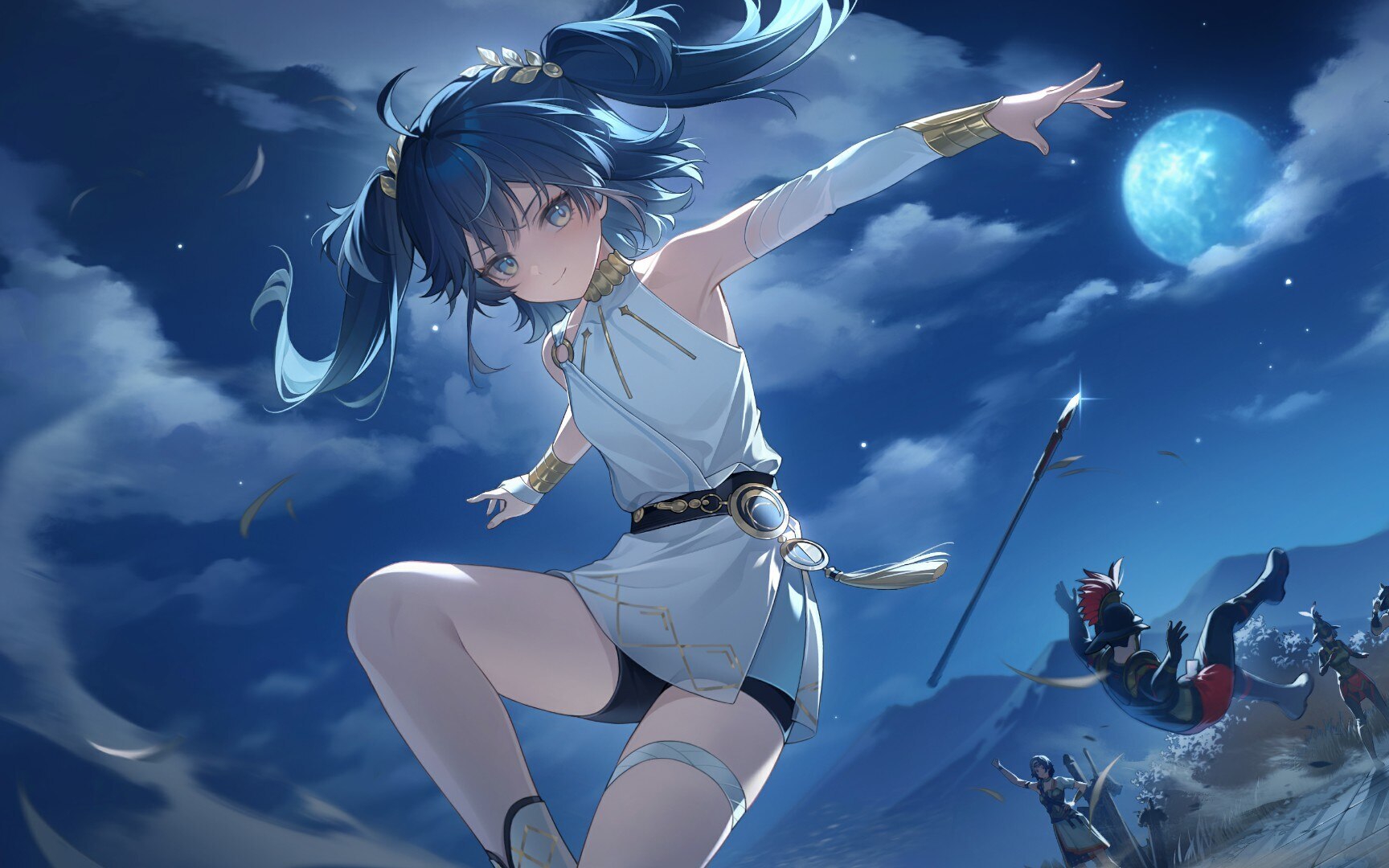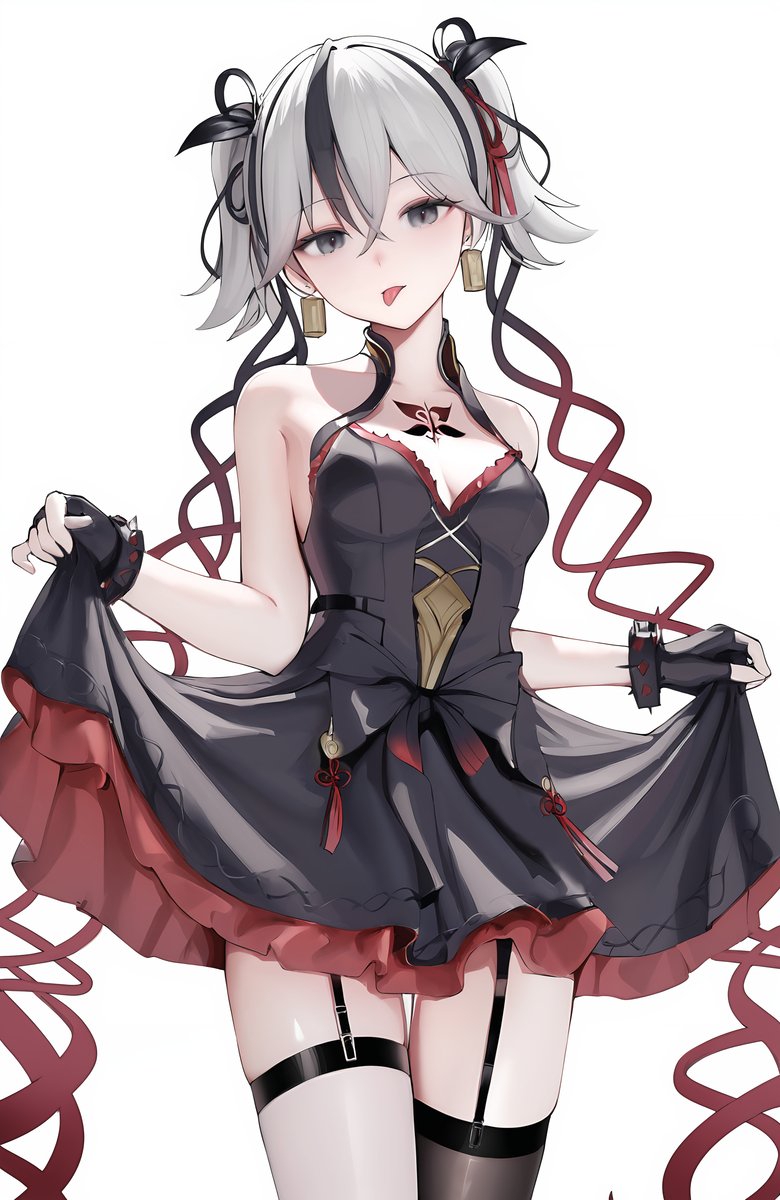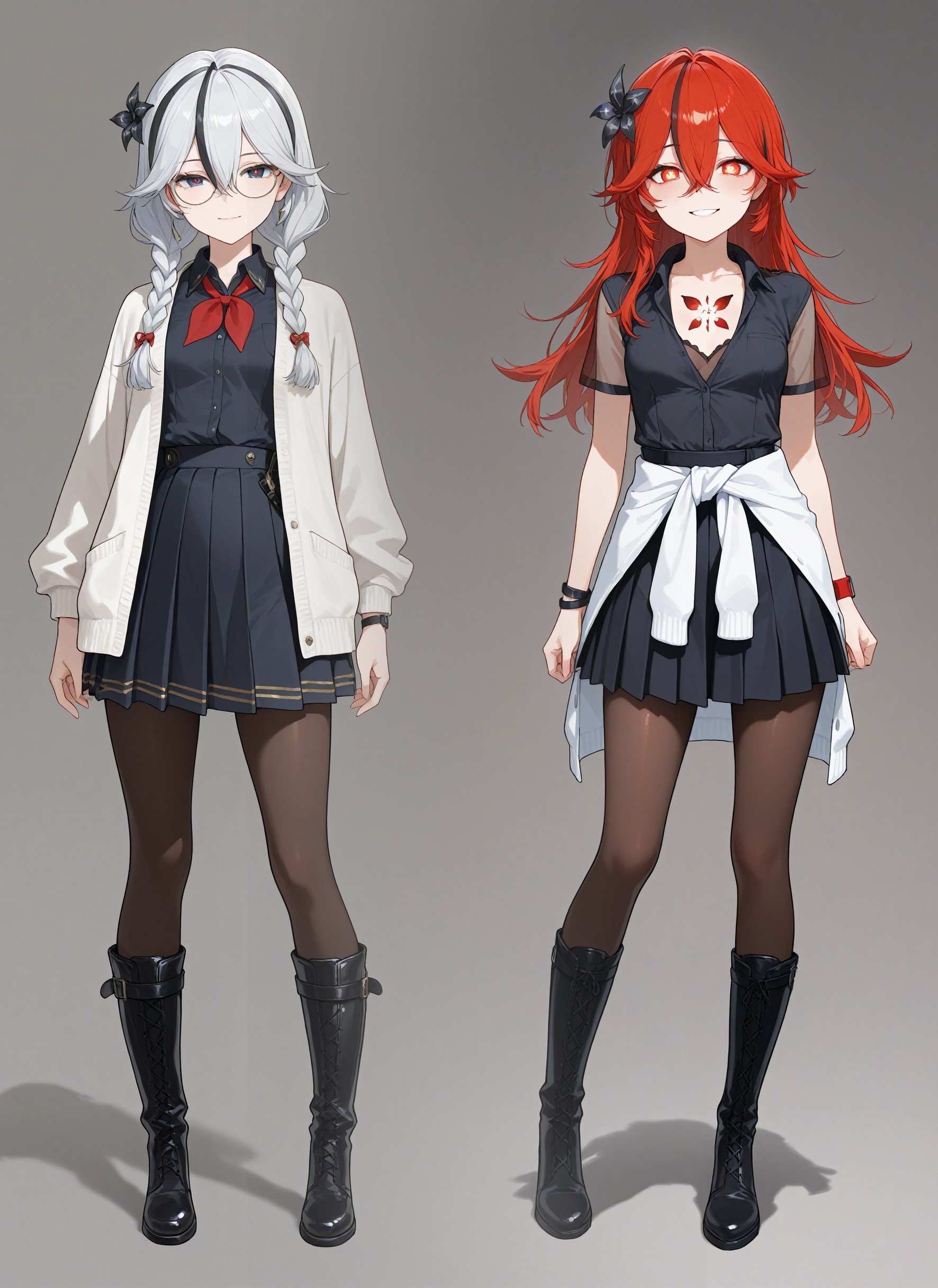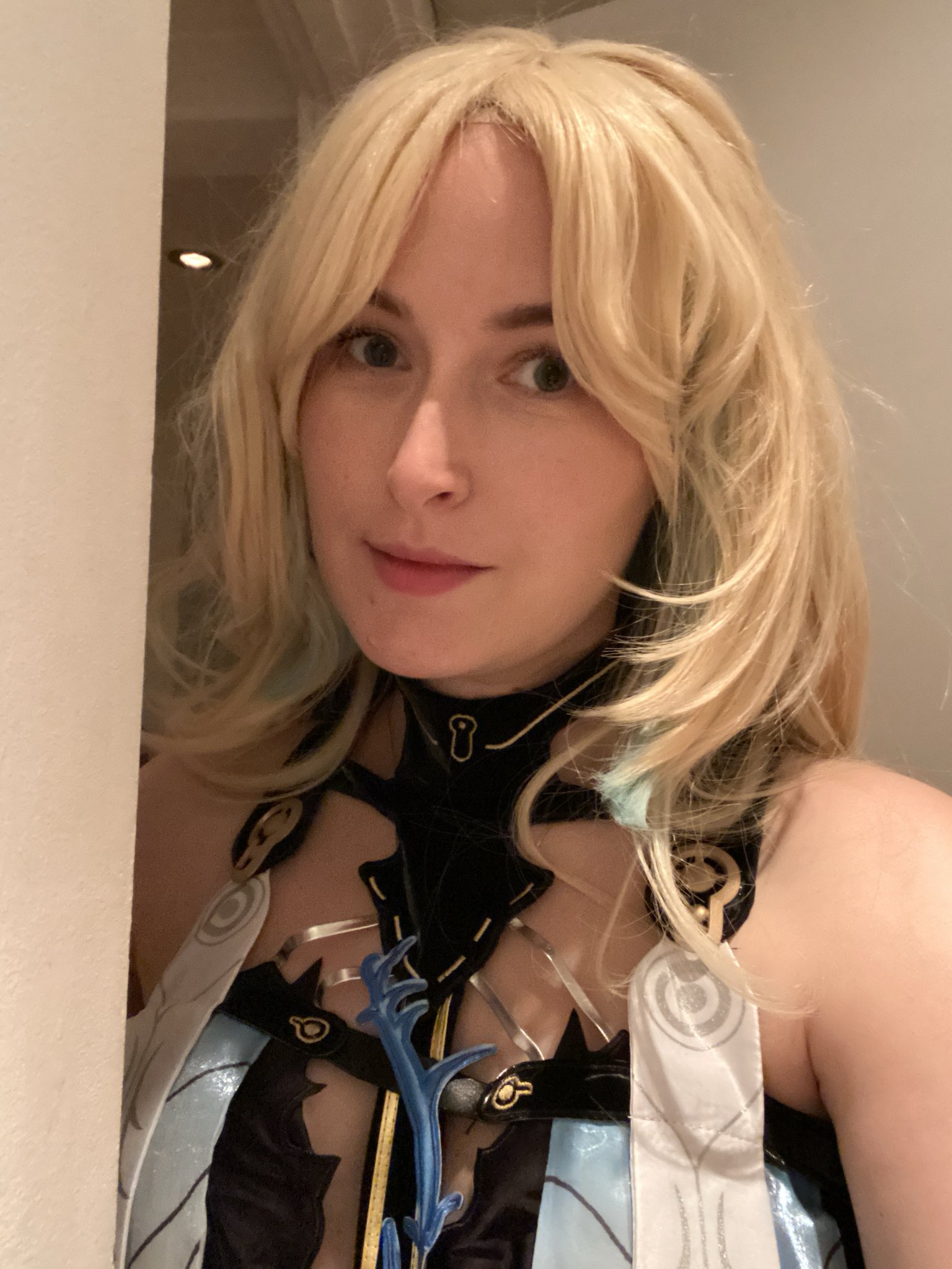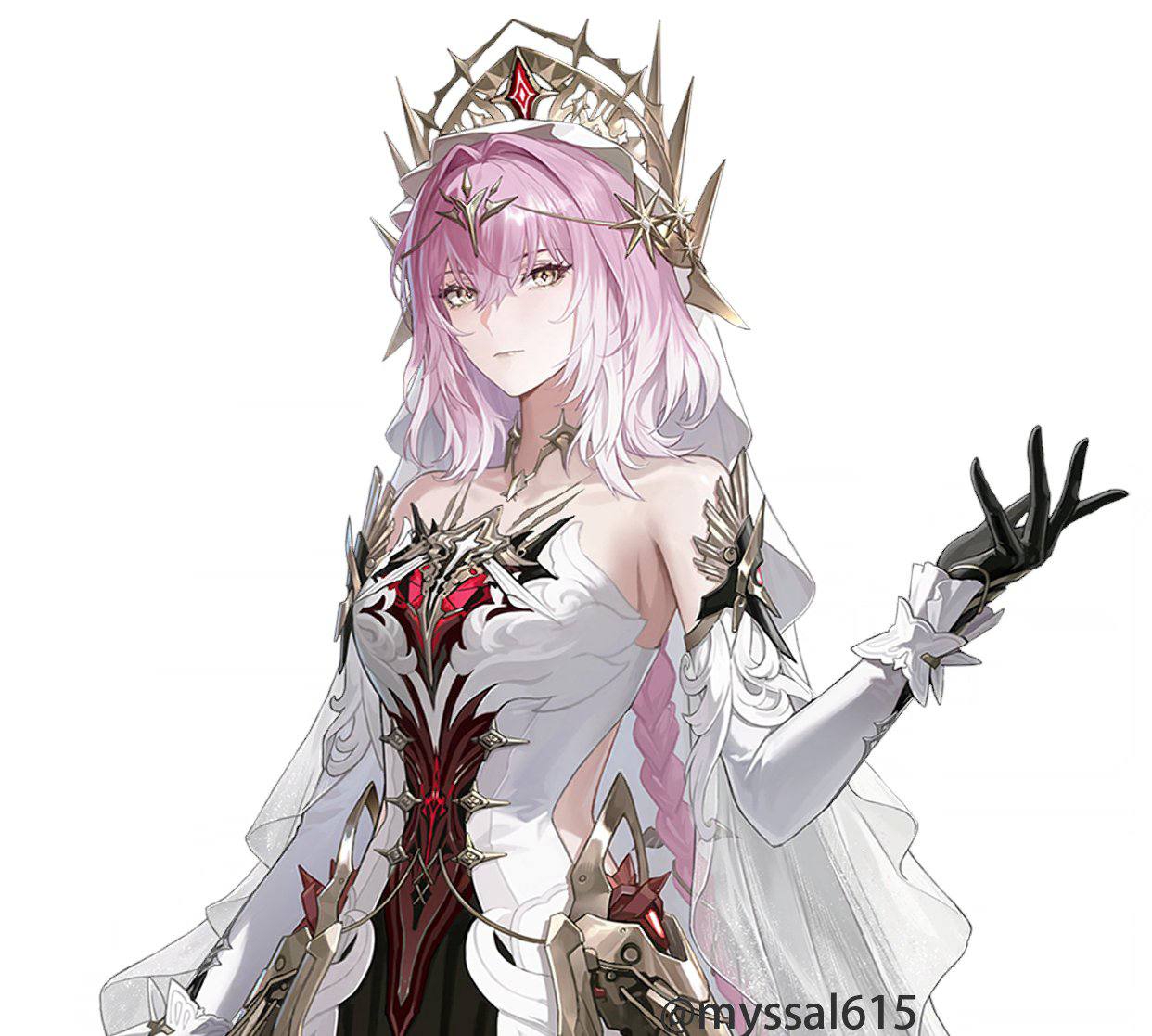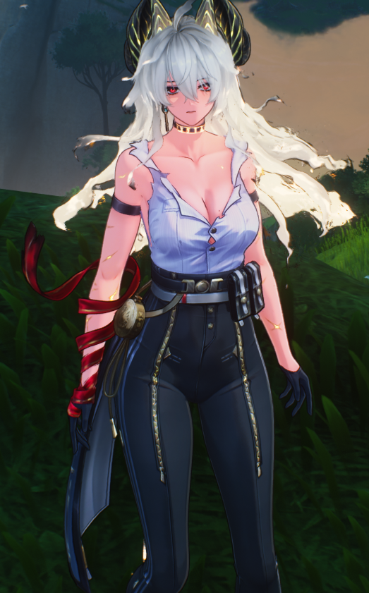 Две формы, первая с длинными косами, что-то типа доброй версии из сюжетки, длинное околосвадебное платье, босые ноги, в этой форме хилит и биффает.