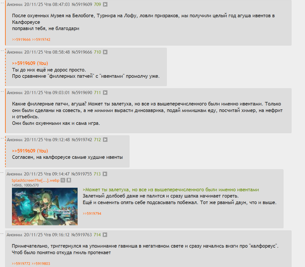 Неспособность прочитать тот пост говорит о том, что поедатели калфореуса углубились в лор через просмотр лысого или просто фармят юшки "ахахах смотрите я жру говно, чел ты жрёшь говно, ахахах вот это у тебя бумкнуло как же вас затролели"