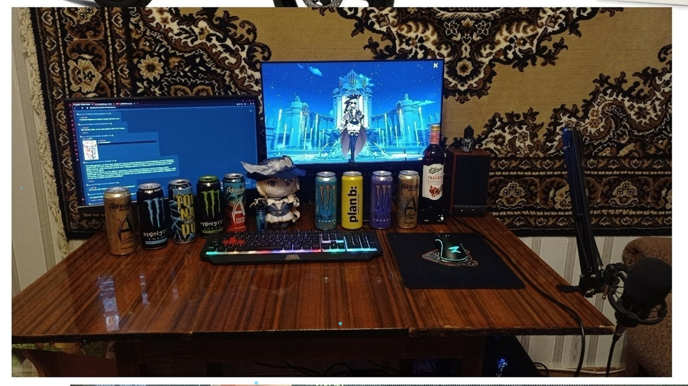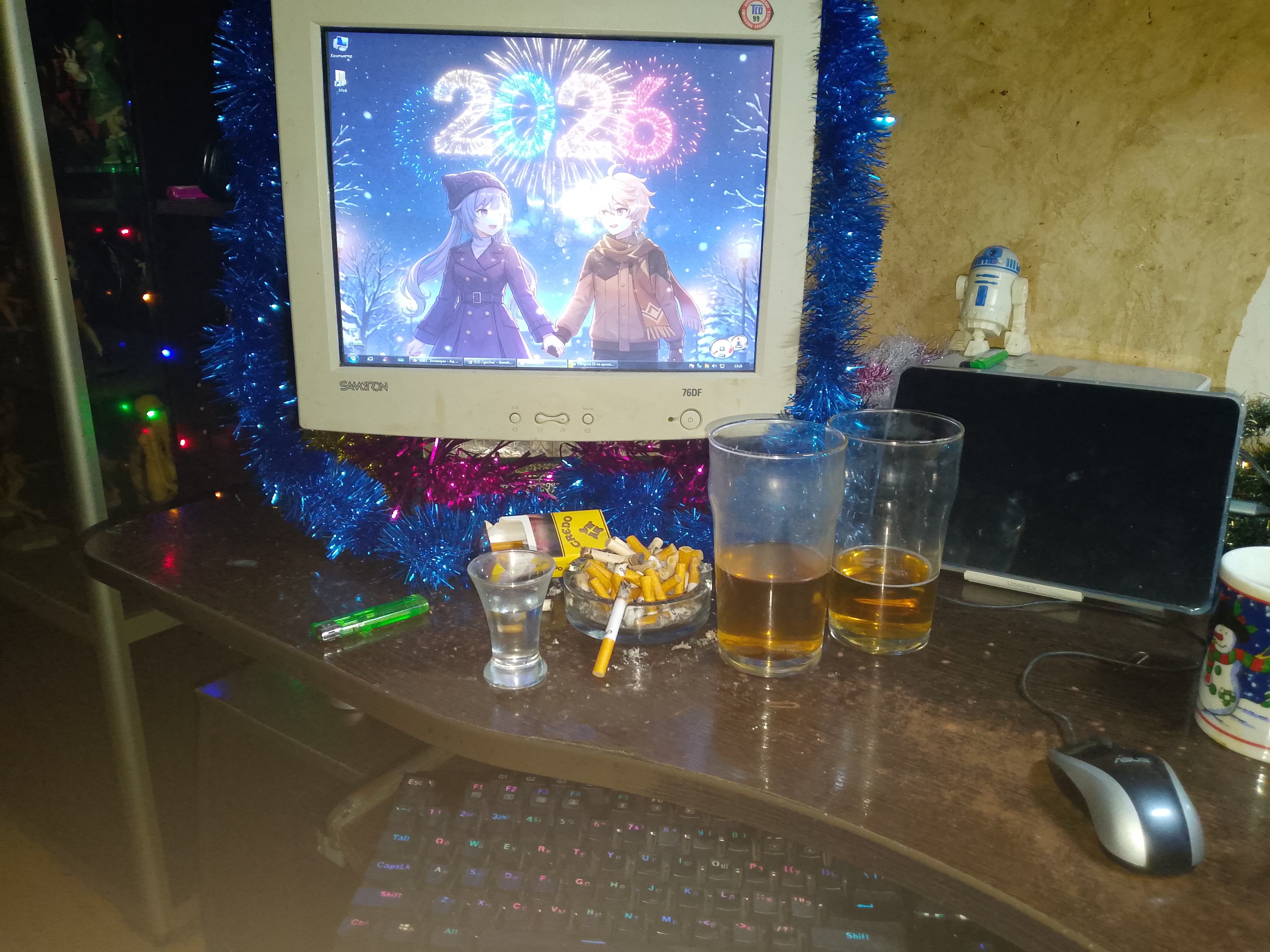 >>6134976 Оп, это я, я. Фоткать в этом году не стал, ибо настроения нет. Из изменений только снятый ковёр, который забрала хозяйка квартиры, убранный микрофон, ибо дискорд и телегу забанили и больше с кентами не пообщаться, и раза в два меньше энергетиков, ибо лень было сегодня (ну, уже вчера) идти пополнять запасы.