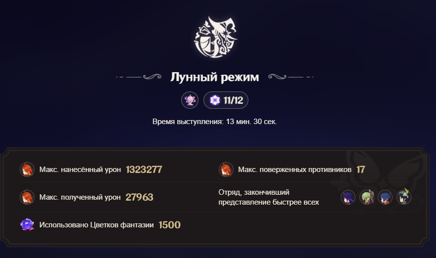 Прошел без ретраев. Одну звезду проебал на бобике Но так лень было чето с ним выдумывать, арлю давно слил а без нее одна йома осталась которая за 1 роту не убивает Тем не менее это лучший результат за все лунные театры - до этого было макс 10 звезд Потом клумба выйдет и с ней еще раз перепройду на 12 звезд