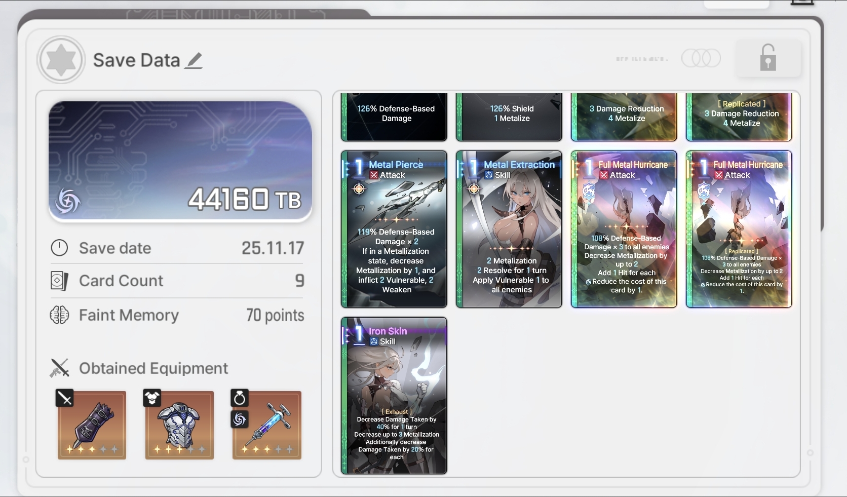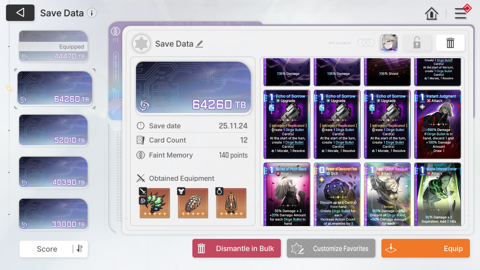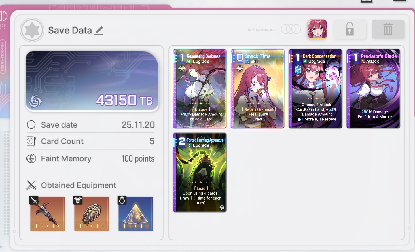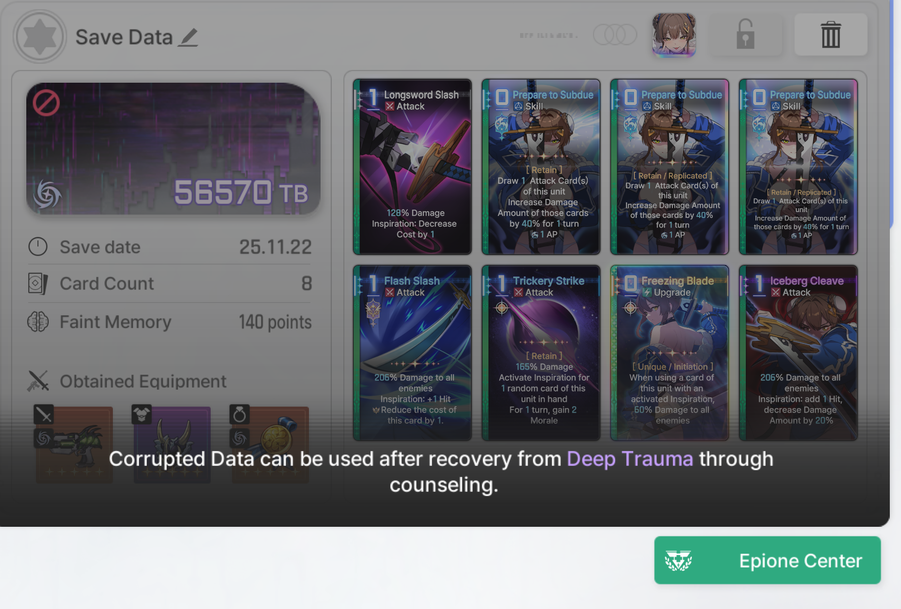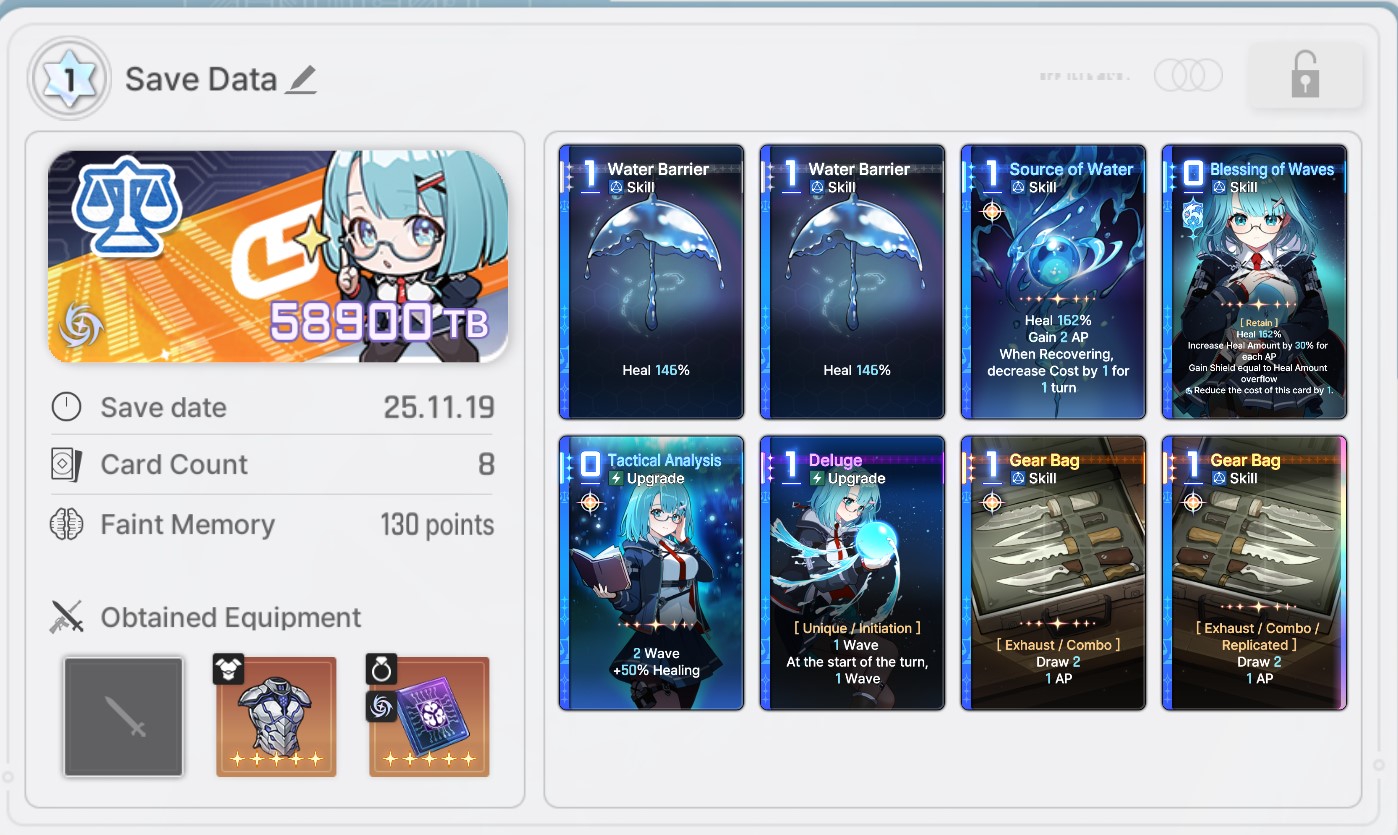 Как тут сейв дата работает? Удалял 1 хил и базовый пук, сделав дабл тактикал анализа. По итогу все удалённые карты на места, а дубля нету. Но у других чаров вроде всё нормально, без хуйни.