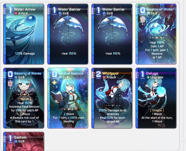 Заковырял первого босса за Юки на последней сложности - из неочевидного ключевой картой оказалась вот эта - она вешает weakness что значительно упрощает игру так как как босс так и большинство противников в целом обычно имеют одну сильную тычку и это делает этот дебафф суперэффективным и значительно упрощает отхил в целом Думаю остальное должно пройтись без проблем (если аккуратно)