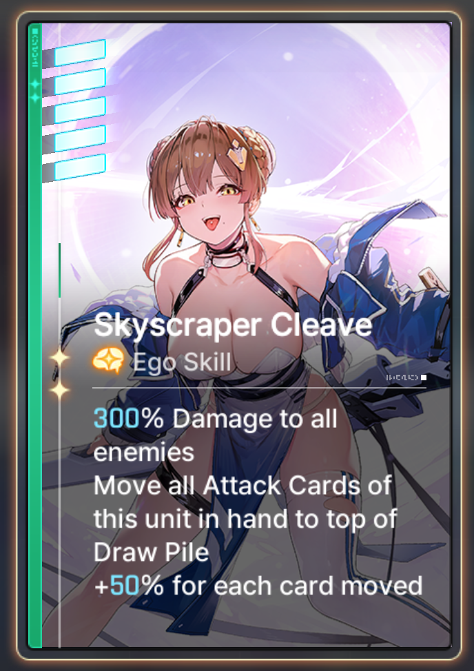 >>5907863 Я обычно ультой пользуюсь, если сразу карт много в руку дало и надо им прокнуть инспирацию, ещё, когда крит шанс стал больше 50% стал просто для урона использовать, чтобы хп засейвить, но без крита урона маловато.