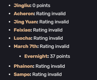 >>5972977 Да вообще он соскочил с неудобной темы, начал с "рераны хуйня", закончился новым аргументом про тех "кто был слабым на релизе". Таких не существует. 1,5 чарика буквально, Аргенти вне фикшена, Светлячок если заглядывать на её ограниченность, бабка если посмотреть на скейлы хуже четверок, и всё наверно. Сам поди крутил робянку на реране вместе с прочими скипавшими метарабами. Мидей там сложно было предсказать, что его как хп дамагера отвяжут от главного хп сустейна, кирена решила проблему полностью, теперь один из сильнейших