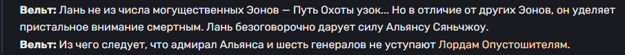 >>5969504 Эманаторы. Все генералы эманаторы. Это озвученный в игре несколько раз факт. Можно конечно теоретизировать, что истинные эманаторы их стэнды, а те "одалживают" их силу (правда Фэсяо никакого стэнда не показывала, а волчья форма вроде как её собственная), но суть не меняется, каждый генерал репрезентант эманатора Ланя.