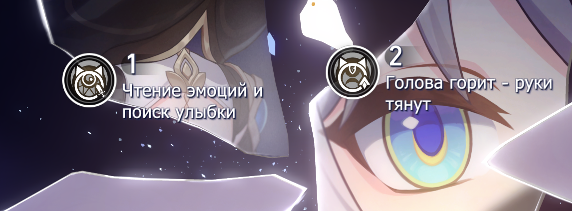 >>5968697 Ну так и я об этом - впервые завезли "показывать а не рассказывать" + отправили половину ВН-стайла нафиг под эту же лавочку, и наняли, блядь, ПОСТАНОВЩИКА, в результате проходной сюжет стало на голову приятнее проходить, а то у меня некоторые ветки висят с Сумеру ещё, и даже с Монда - даже если сюжет ничего, ну так "брифинг-дебрифинг" в стиле Мона-Паймон-Табибита, и по кругу, и в этом монодиалоге ещё и камера прибита, причём бездарно, как правило. В Ноде, правда, немного интерактивность пострадала, но всё равно вышло лучше чем всегда.