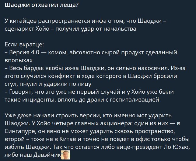 >>5976241 Контролирующим акционером и фактическим руководителем miHoYo является Цай Хаоюй. Он, а также два других основателя — Лю Вэй и Луо Юхао — владеют большинством акций компании и занимают руководящие посты.