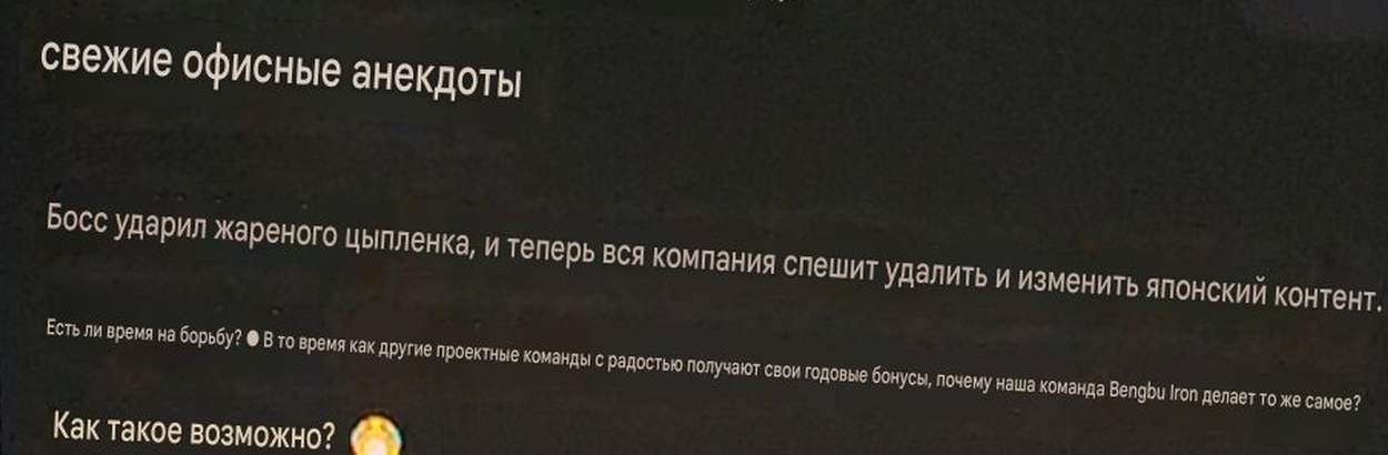 >>5968789 Мне почему-то кажется. что текста так много именно из-за ТЗ на требования по времени. Типа выходит у них патч, в нём должно быть 5 часов сюжетки, а реального сценария там часа на 2. И тут как раз и вступают в дело графоманы, высирающие тонны водищи, искусственно растягивая длинну сюжетки до нужных значений.