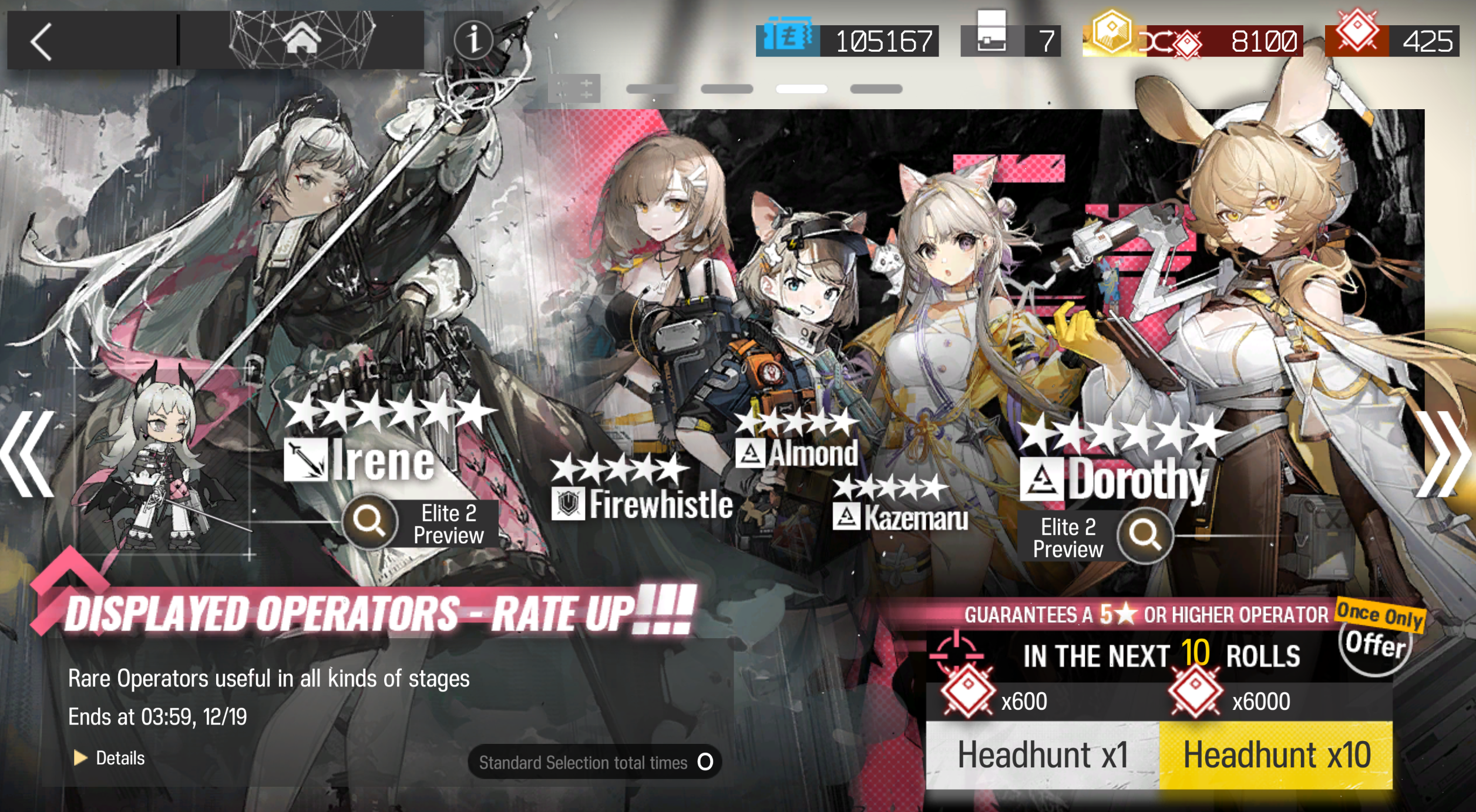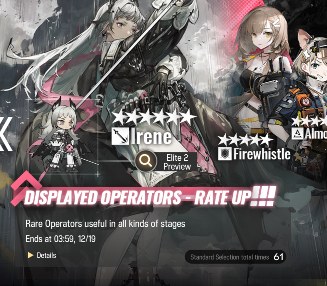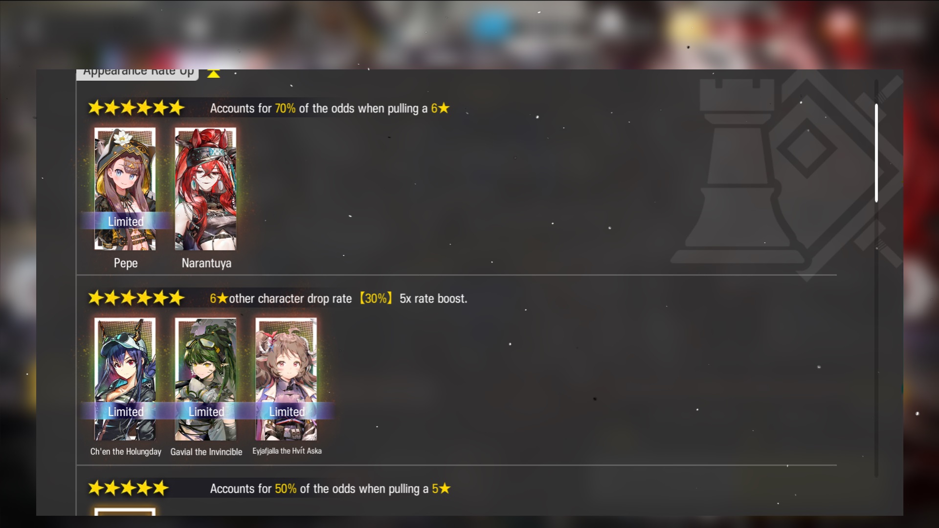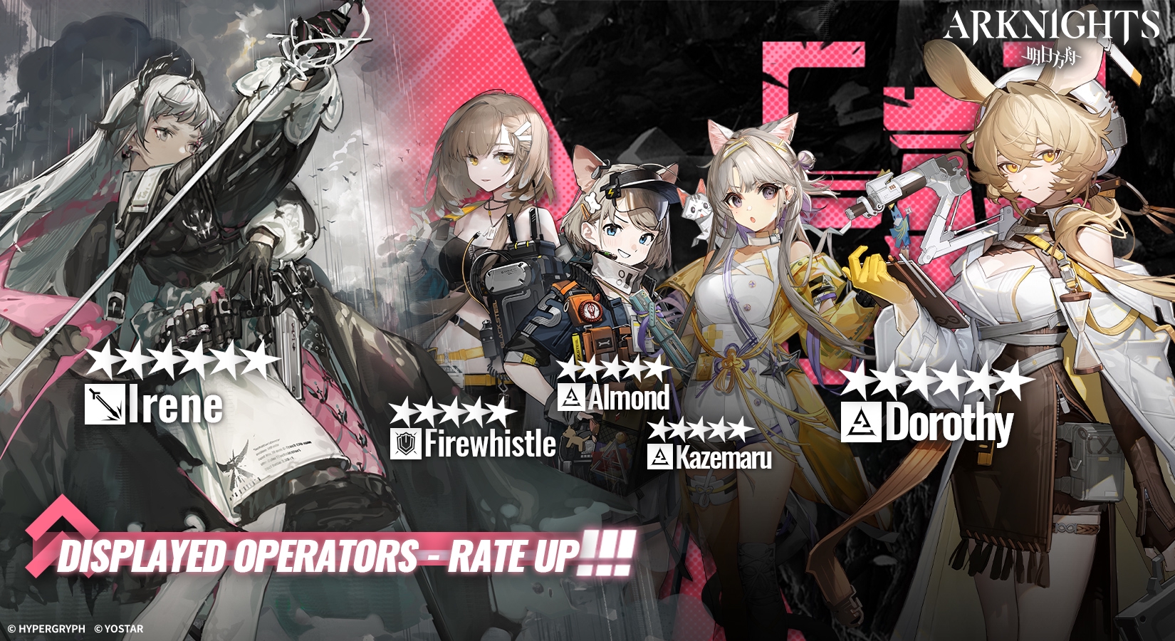 Также начиная с этого баннера, следующие оперативники будут убраны из пула оперативников, доступных в стандартных баннерах и переведены в кернел баннеры: 6★: Mizuki / Saileach / Fartooth / Flametail / Gnosis 5★: La Pluma / Mulberry / Ashlock / Corroserum / Aurora