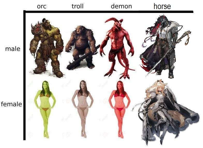 >>6005557 Конь в пальто это конечно забавно, но меня больше заинтересовал этот чел. Вроде бы это первый гуманоид, у которого конечностей больше стандартного набора. (хотя были Артурия и Вжушкзекутор гаргульи с крыльями в рогалике, но это никанон).