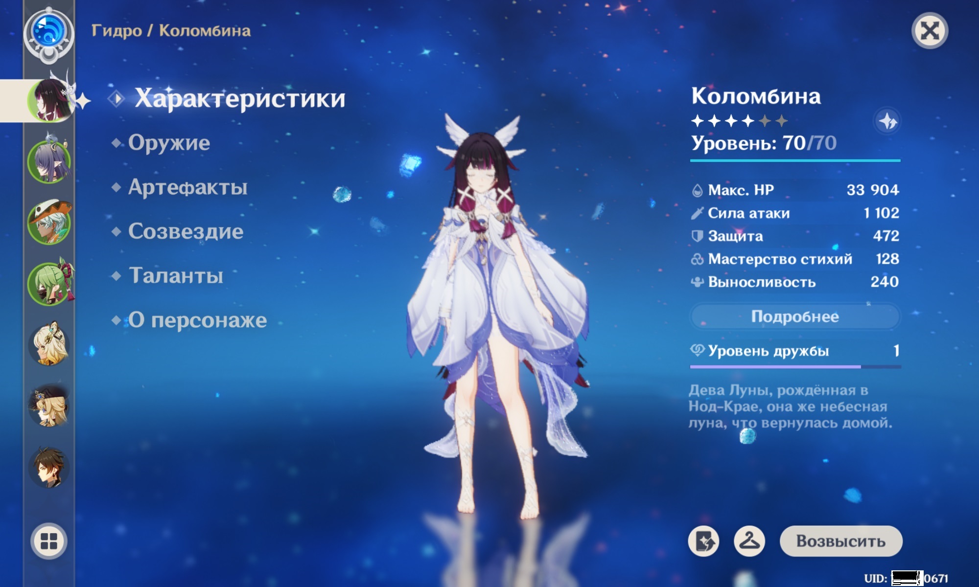 Поздно довольно забрал после уже поздней с4 Моны, прожорливый мотылек, а такая худенькая, а еще с6 Фишль добил, играю с 2.0, может прокачаю теперь лол. Будет играть с Дашулькой моей! Может потом еще на ролл кобылки прогреюсь хз, но пока так.