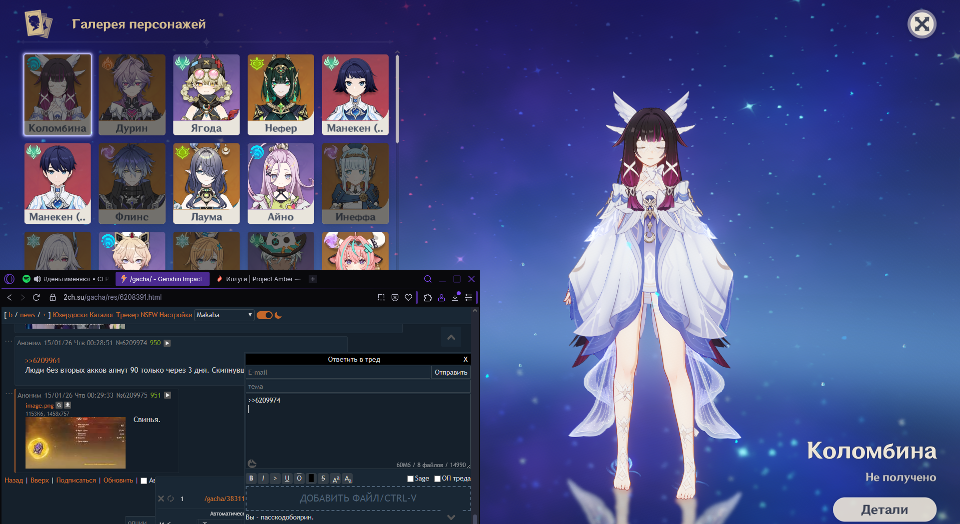За 70 круток вытянул колумбину, мизуки и инефу. Причем после колумбины следующий тенрол мизуки и потом через один инефа. И сама колумбина была 50 на 50 вин. Впервые такая хуйня. Обычно всегда на 80+ проигрываю 50 на 50 и потом опять 80+ надо.