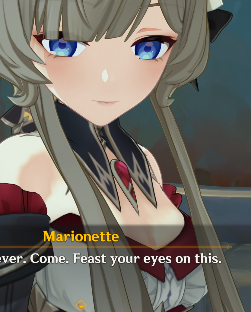 Я напоминаю, что Геншин эта та франшиза, где упорото игнорируются самые мемные у фандома персонажи, например Вареса, Йоимия, Ноелль, Чичи, Геодед, Навия, Кека, зато про Туалетыча и Кальбедо километровые этажи текста и их реплик в сюжетках. Но хуй с ними, это хотя б игральный персонажи, самое большее внимание уделено каким-то неписям, на чью историю мне насрать. У нас игральных персонажей уже больше 100, это ж целая деревня, а неписи продолжают занимать 80% болтовни. Я когда уже вижу непися с синеньким восклицательным знаком, то мне плохо...