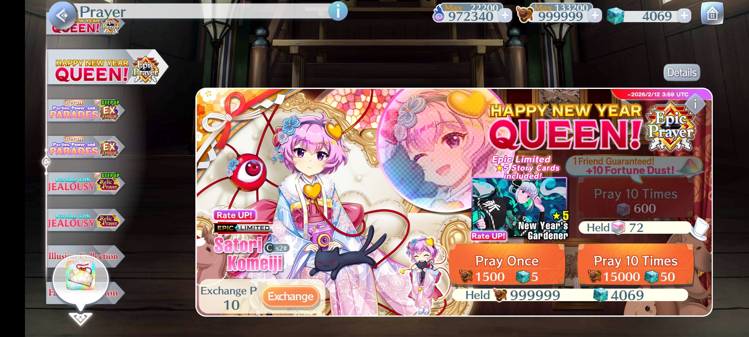 Из не сильных крутил только уфес цирно в рыцарских доспехах за прикольные доспехи. И то пожалел потом, тк конфет не хватило на гарант новогодней марисы, пришлось без гаранта наряжать. Ещё могу среднюю вынаряжать, если персонаж нравится, например эпик джунко (хотя, мб, она и сильная, я так и не понял).
