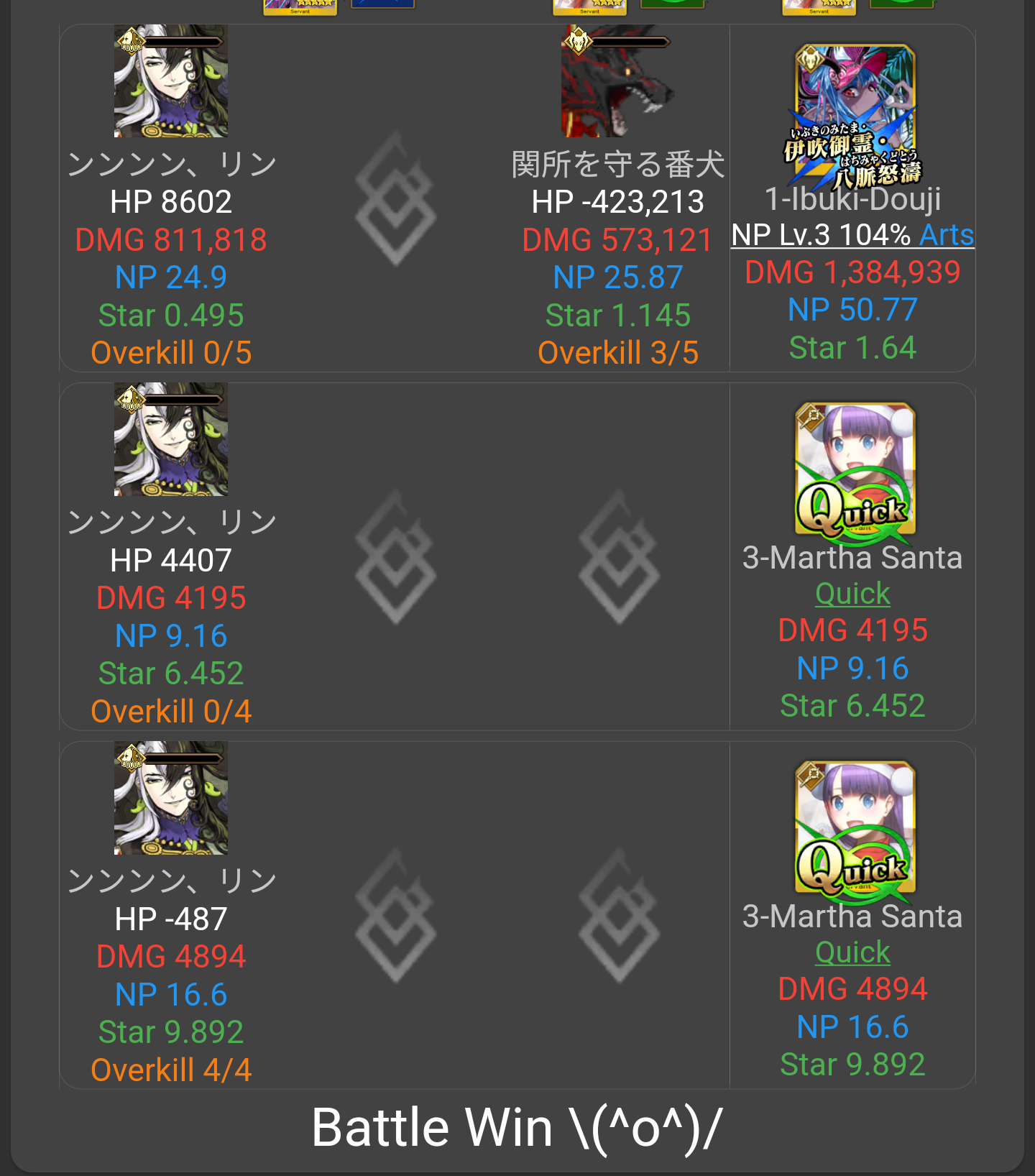 >>5421235 Вроде хорошо фармит кстати, с сумо и 3мя Скади. Против берсов конечно недокачивает, но на сейберах по 133к стукает и набирает 50 нормально( если что то есть +3% в конце хода и батарея на 20%) Но для смешанных нод урона на нп1 конечно маловато будет и реген не всегда работает(