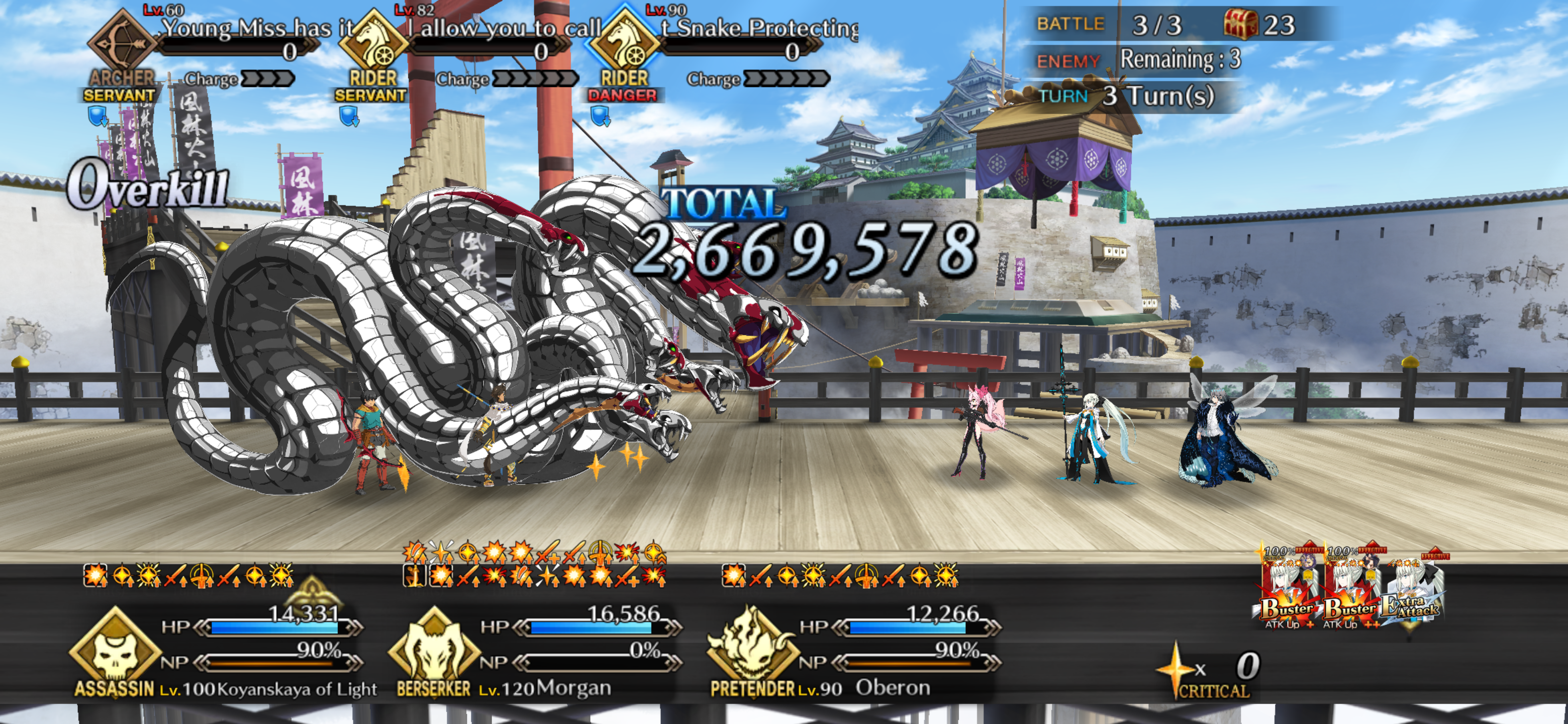 Разделение ОС3 на три части - та ещё параша, во второй части контента на 200 AP и "сражение" с бистом которое пройдено рандомным авенжером нп1 с первого раза Зато 3 месяца без контента, без ивентов, только логин бонусы и гача Одно не понял, кто играл в экстру - в чём отличия Хакуно и Хакунона? Везде жалуются, что дали первого, а не второго