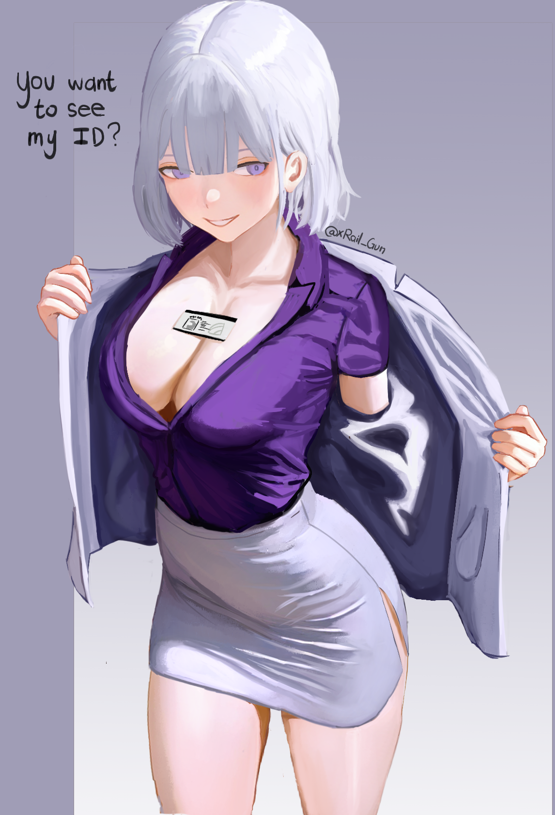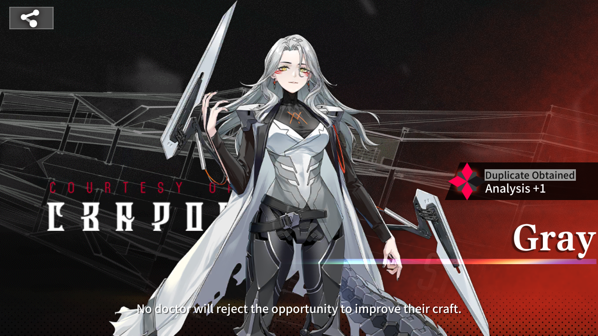 Только поставив себе Грей на заставку, заметил, что бляха на ремне (что за ремень, интересно, кстати, будто от поясной сумки, которая где то на боку или спине) складывается в её "инициалы", которые известны на момент первого появления - Doctor Gray