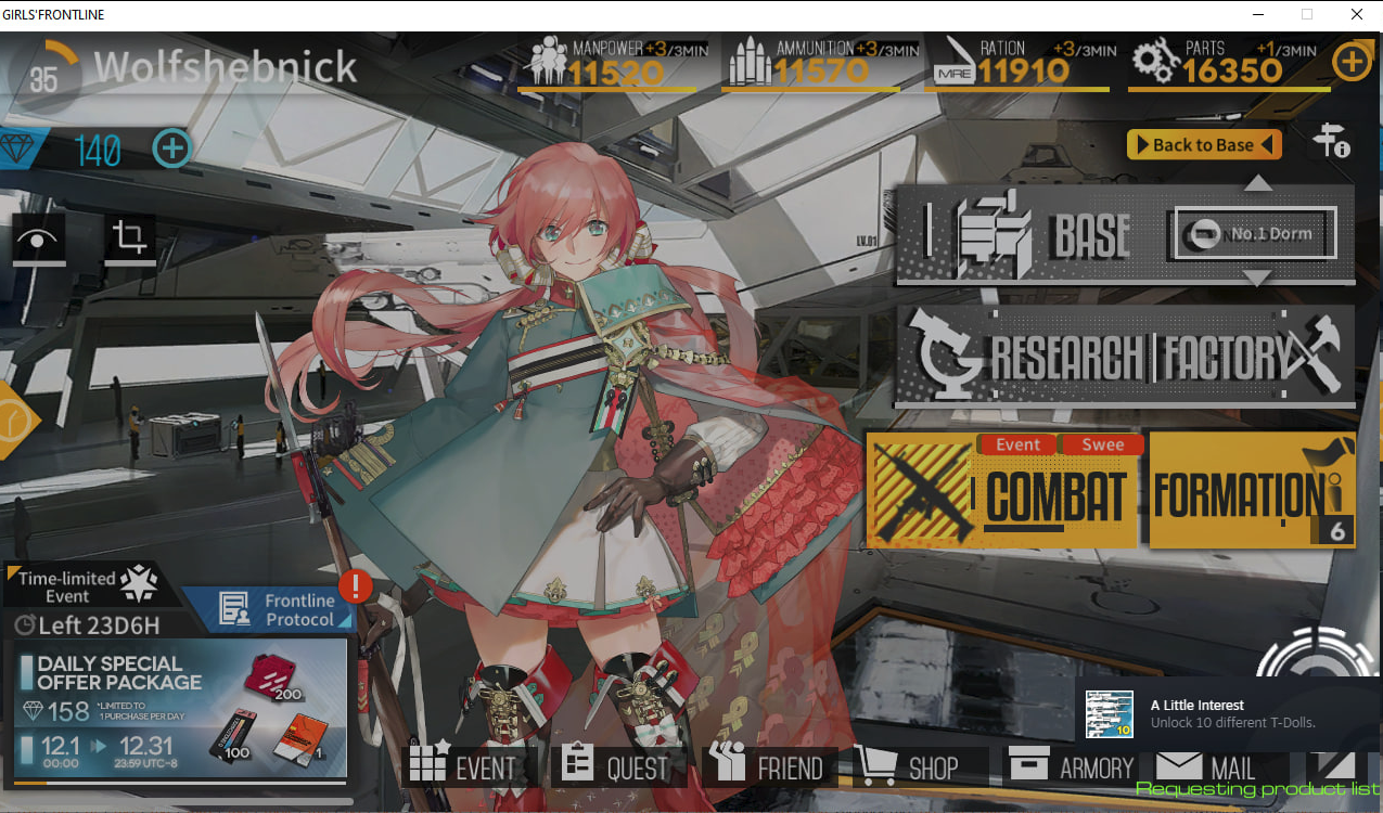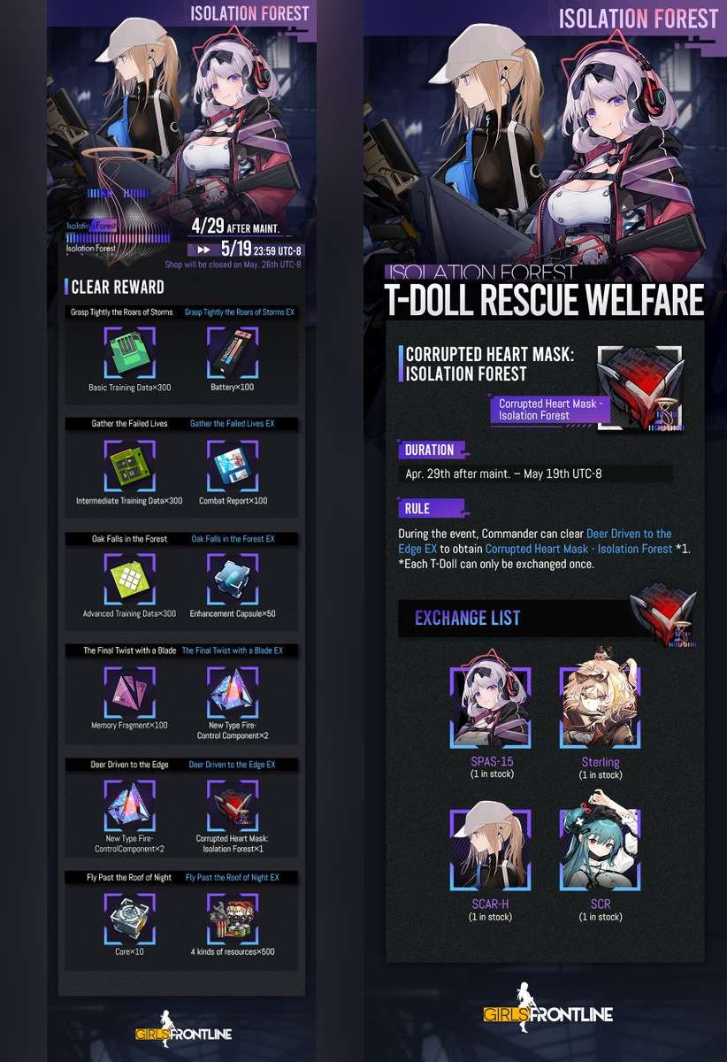 А вот и новый эвент Дым сражений окутал долгую ночь Франкфурта, скрыв шаги Командира перед самым рассветом. Весть о гибели повергла каждую Куклу G&K в пучину отчаяния. Тем временем Токарев, выведенная из строя, была приведена в чувство Калиной. Две девушки, отказавшиеся верить в смерть Командира, отправляются на поиски правды...