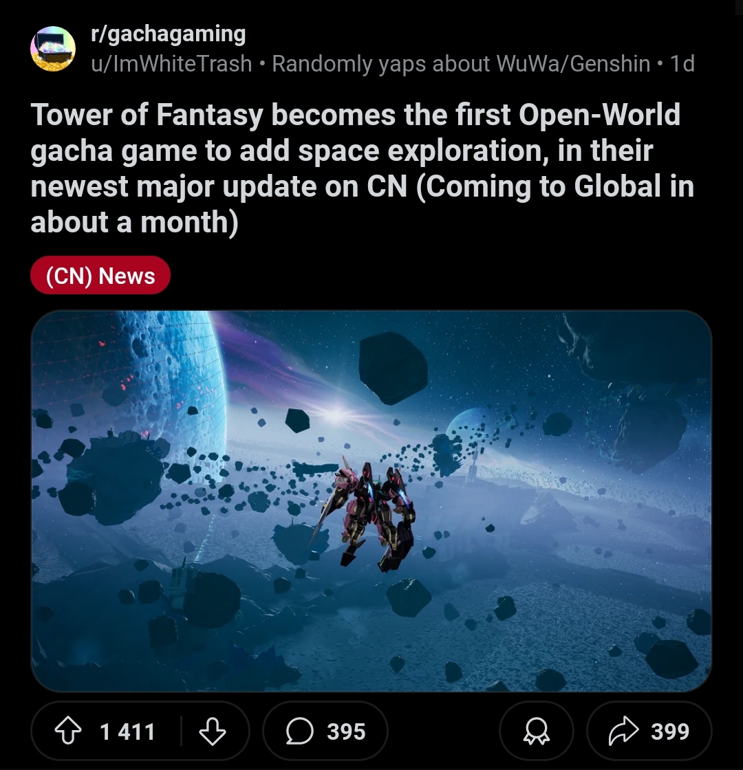 >>4757852 > почему игра не взлетела Вот этот >>4759751 прав. Жанр гача ммо мало кому понравился. Тут как бы про циферки, но за циферки надо платить. Довольно среднее исполнение самой игры - будем честны. Пустые катсцены. Вроде прикольный, но не запоминающийся мир. Очень душно слушать/читать/смотреть диалоги (ни разу не скипал - знаю о чём говорю). Сюжет не фентези (тогда сайфай не сильно модно было). Китаекальская локация просто убийственно дрочная когда тебе по сюжету нужно бежать по всей этой ебучей стене(потому что ещё не открыл телепорт) 10 минут реального времени. Да и на момент выхода геншин ещё был топ 1 без обсуждения, а сейчас подзаебал вроде как хз сам давно бросил.