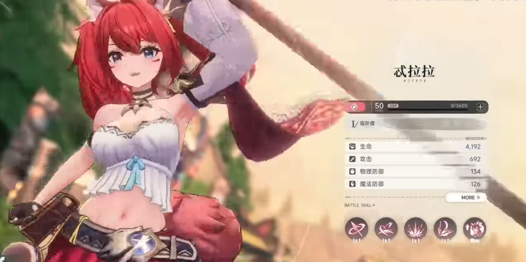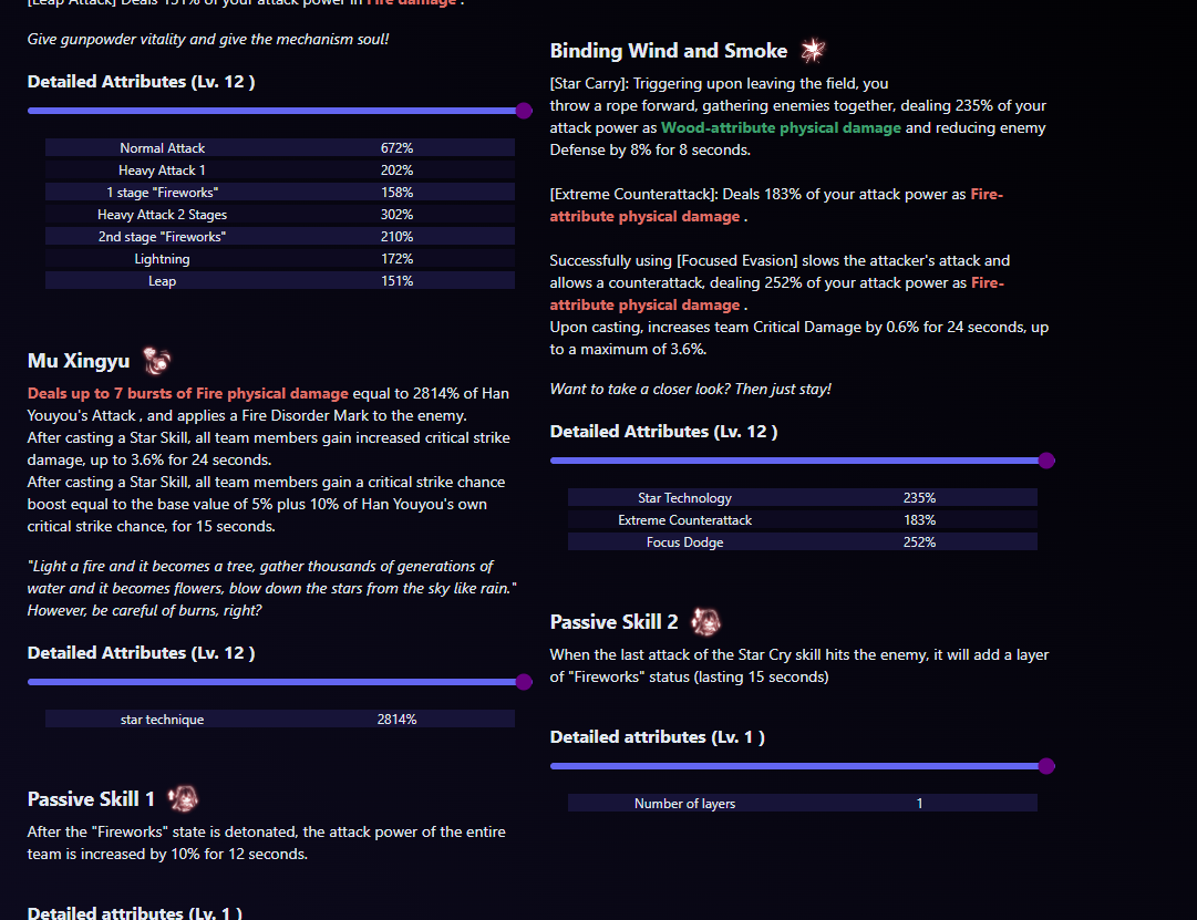 No constellation system or weapon was seen. Each character has a panel called “Star Blessing” (星赐), with 5 levels in total. Each level includes 3 stat configurations. You use materials and money to enhance different attributes and skill bonuses for the character.