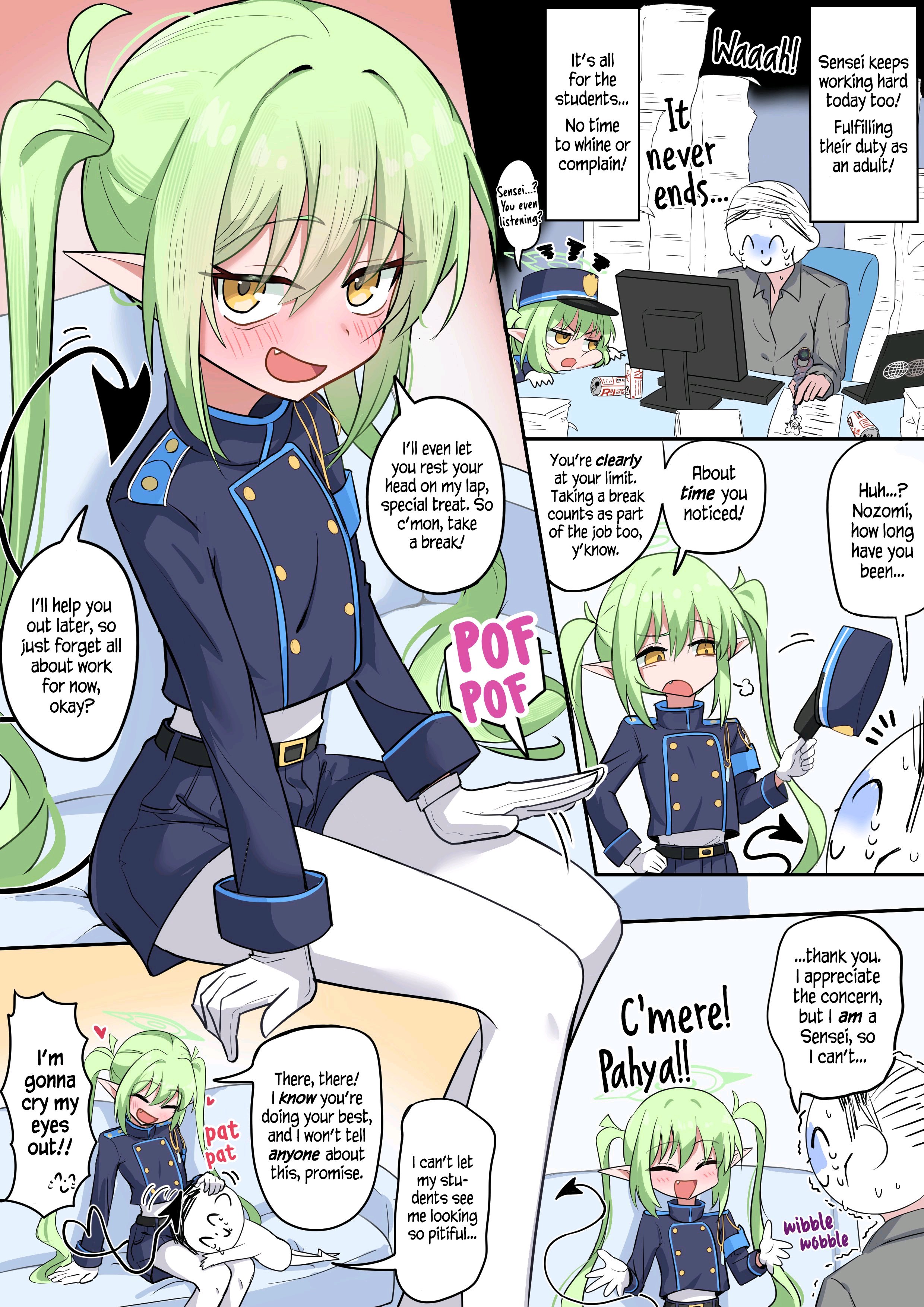 У обычных антропоморфных собачек/кошечек нимба нет, как нет его и у сенсея. Но по косвенным диалогам(Типа фразы, обращенной к Сене, что трупа она никогда не видела и вряд ли увидит) можно считать, что там тоже что-то нечисто. Но лор архива это такая вещь, которую никто не знает.