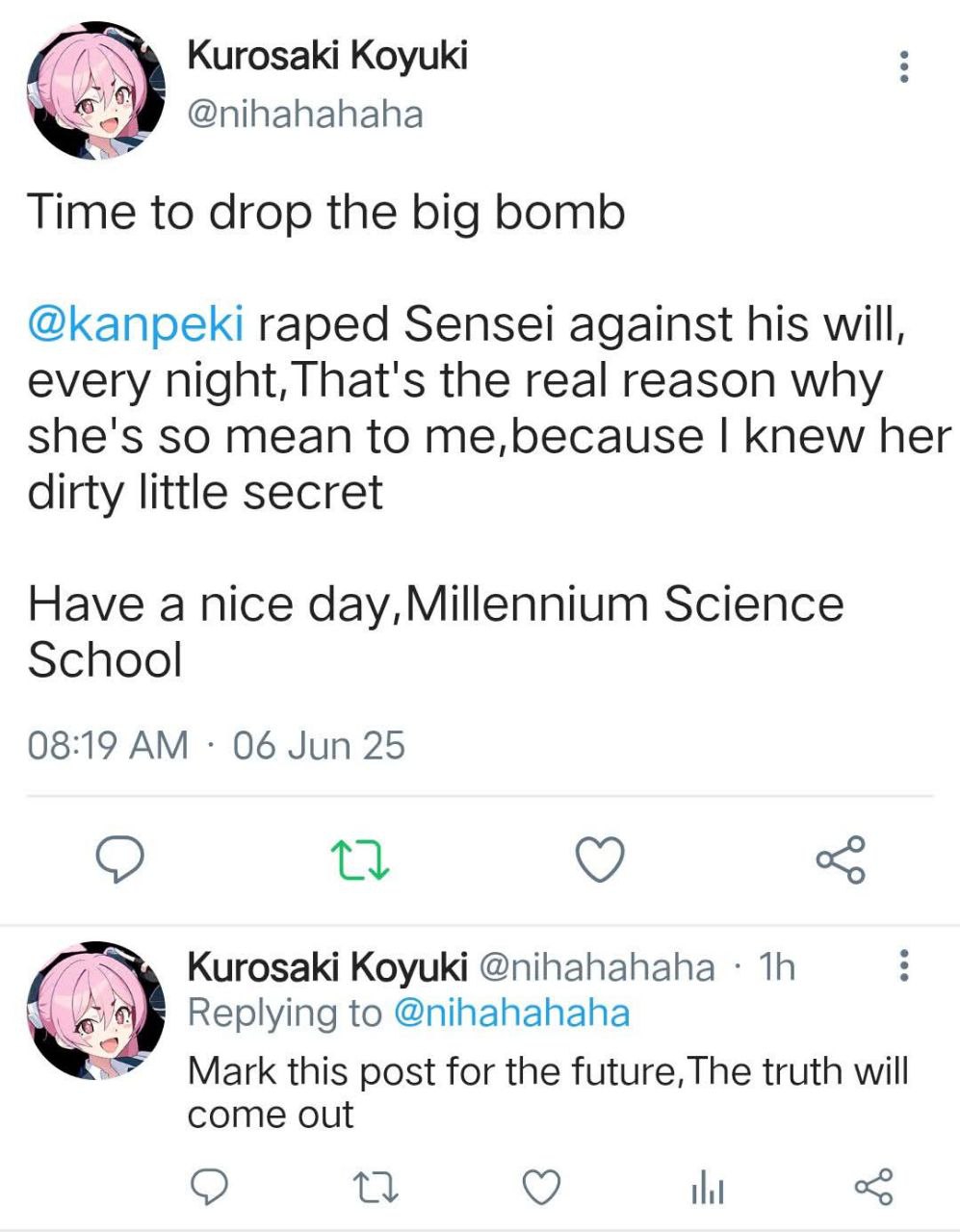 >>4847563 Как адекватный человек, я перестал всеьез воспринимать сюжет прям сразу, с арки школы, погрязшей в долгах. Рекомендую сделать так же. Напомню, там милую кошкодевочку Серику отмудохали+похитили и увезли в ебеня копать себе могилу. Потом коллеги похитителей (Ару, Муцки и кто-то ещё) устроили организованное вооруженное нападение на кошкодевочку и её друзьяшек, а на следующий день Муцки на голубом глазу прыгает на ручки сенсею, на возмущение Аяне заявляет "да че такова, работа есть работа)))". Сенсею это тоже как бы норм, грит "друзья, давайте жить дружно))". Не пиздец ли? Мозг офф, он тут не потребуется. мимо ньюф