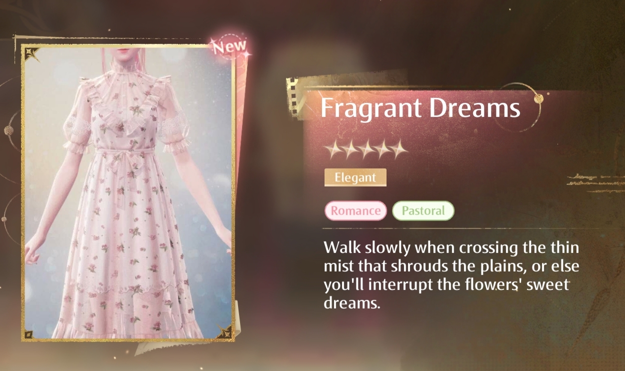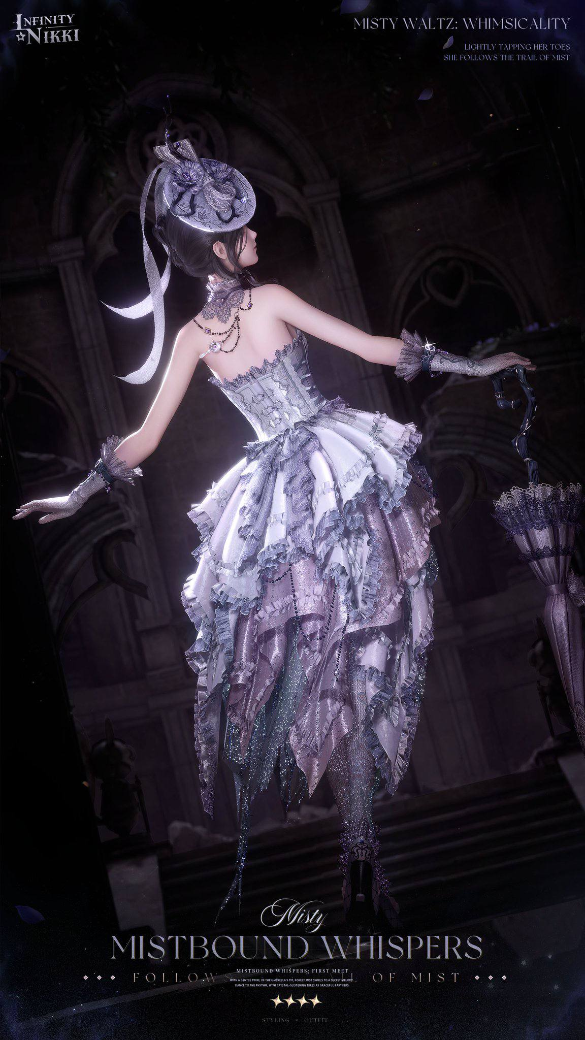 >Причудливый гардероб | Шёпот тумана >Основной атрибут: sexy >Наряд «Шёпот тумана» можно эволюционировать в костюм «Шёпот тумана: Тепло». Полностью прокачайте его, чтобы получить наряд «Шёпот тумана: Первая встреча». >Навык наряда >[Туманный вальс: Причудливость] >После активации навыка [Туманный вальс: Причудливость] Никки исполнит особый танец. Легко ступая на цыпочках, она будет следовать за клубящимся туманом, улавливая его ритм и наслаждаясь музыкой, скрытой среди деревьев.