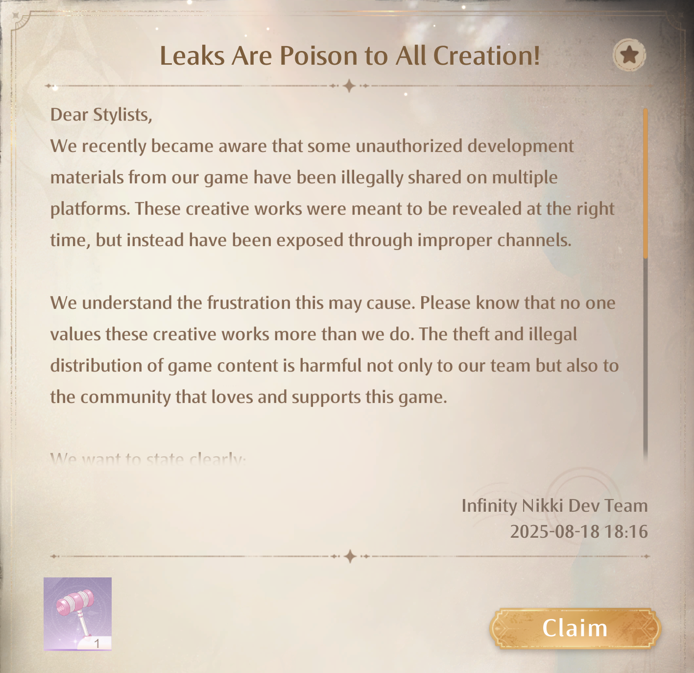 Мне Никки кстати с тз лудомании не нравится, потому что обычно в гачах можно на шальном ролле что-то прикольно сроллить и это держит на крючке, а тут никак всю шмотку не выкрутишь, а части шмоток в общем-то бесполезны.