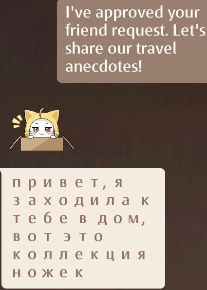 >>5193330 Когда в прошлом патче добавили пвп лаберинты во второй половине, я написал рандомной девчонке в списке друзей, чтоб вместе зачекать что это такое. Так вот, это оказалась не девчонка 😐