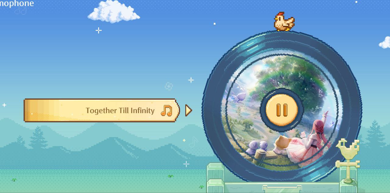 Поставил курицу коллабную, а она оказалась проигрывателем и можно музыку фоновую ставить на остров. Пластинок в ней не было, но спасибо что ПРЯМО В ИГРЕ написали где их брать. Теперь у меня хит из 1.0 на репите и выращивать цветочки стало веселее.