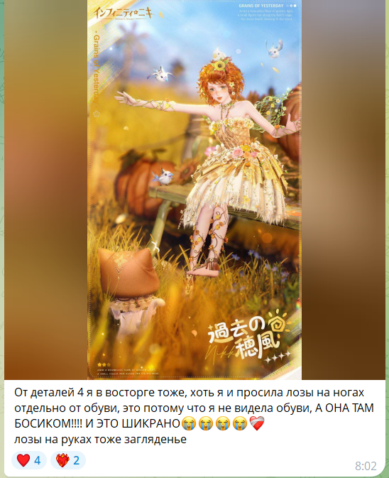Чет пол года прошло, так ни одной пятерки и не кручу помимо журавля. Ну хвост забрала русалочий а потом поняла как обосралась когда узнала что он идет как отдельная юбка. В общем похуй на то что там инфолды в сюжете намутили, я его всё равно не читаю. А вот то, что перекрасы добавили - велико, пусть и чутка за пейволом. Всё равно чисто раз в патч захожу пофотаться и гачу покрутить