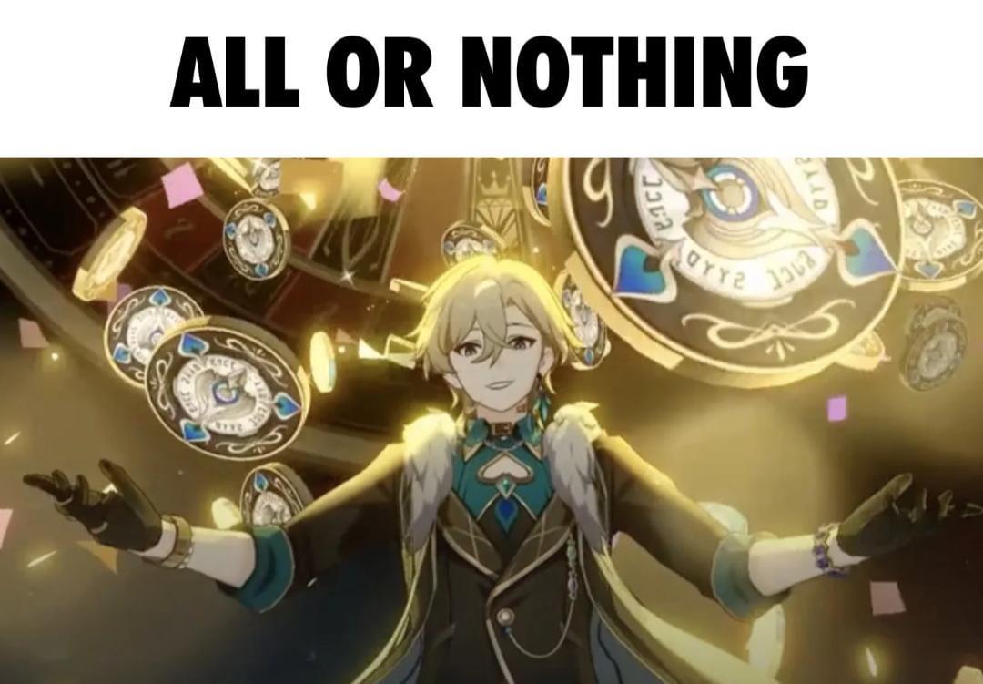 я одобряю подобный подход к банерам, но у меня данная формула может меняться, всё таки когда у тебя куча персонажей на аккаунте (в геншине у меня более 70 персонажей, в вуве штук 30), то смотришь уже больше на мету, ну а внешку всегда можно через скины геймбананы изменить, 3дмигото в геншине работает замечательно, без лагов как в вуве.