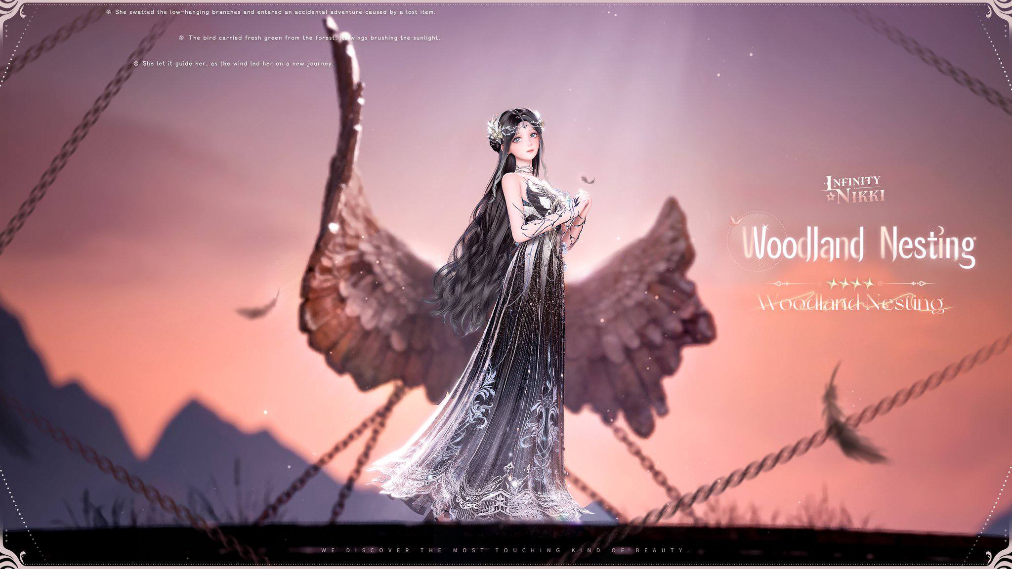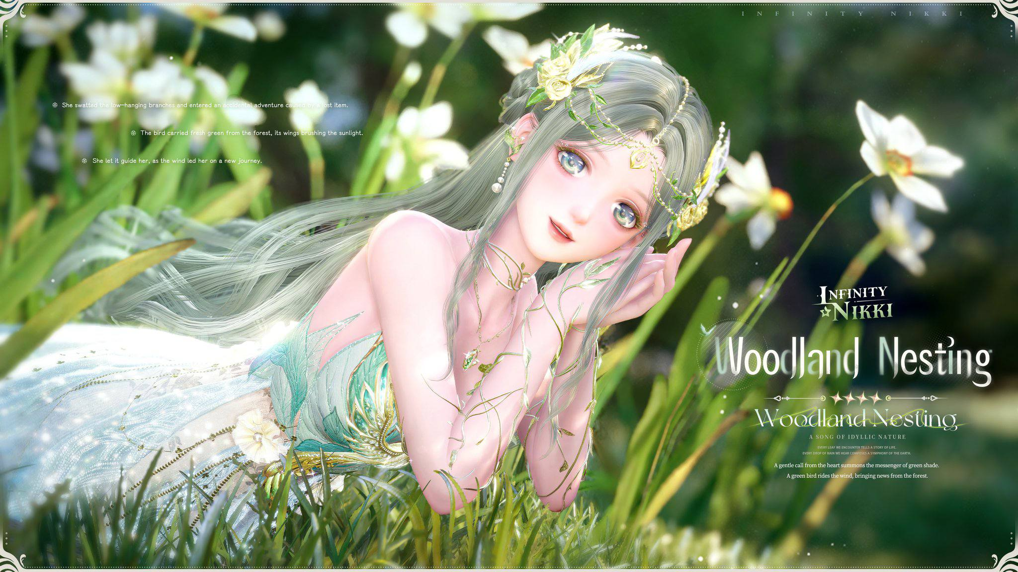 >♾️ Причудливый наряд | Лесное гнёздышко >Основная характеристика: Elegant >Она откинула нависшие ветви и шагнула в неожиданное приключение, начавшееся с потерянной вещи. Птица принесла с собой свежую зелень леса, её крылья касались солнечных лучей. Она позволила ей вести себя — и ветер направил её в новое путешествие. >🕊️ Способность наряда >[Песнь ветра: Причудливость] — мягкий зов сердца призывает посланника из зелёной тени. Зелёная птица несётся на ветру, принося вести из леса. После активации способности Никки призывает зелёную птицу. Она легко парит в потоке ветра, садясь на кончик лианы, готовая мягко поделиться последними лесными историями с близкой подругой.