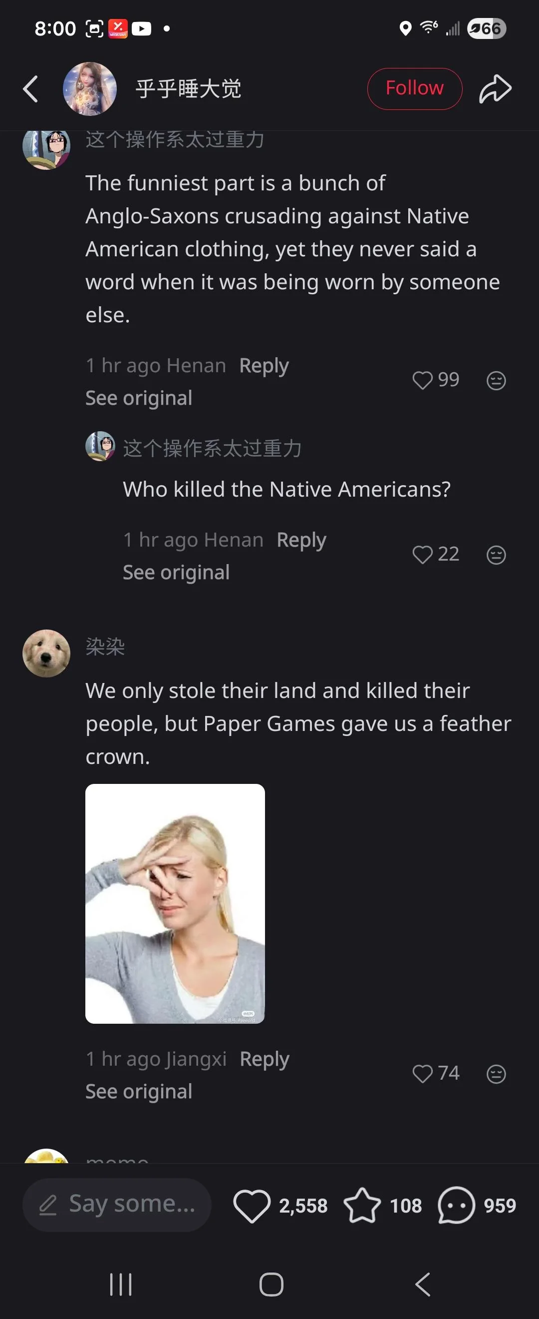 >>6027185 Первый, несмотря на то, что в целом комент был принят положительно, за упоминание убийства "нашими предками" коренного населения в дискусии про шапку индейскую. Во втором сиса подняла вопрос почему глав тетя не заметила подмены из за кожи, ведь ее Никки не белая. Я написал что глав тетя мб решила что Никки приняла баню перед ритуалом поэтому ничего такого в этом для нее нет. Этим коментом я ворошнул осиное гнездо..