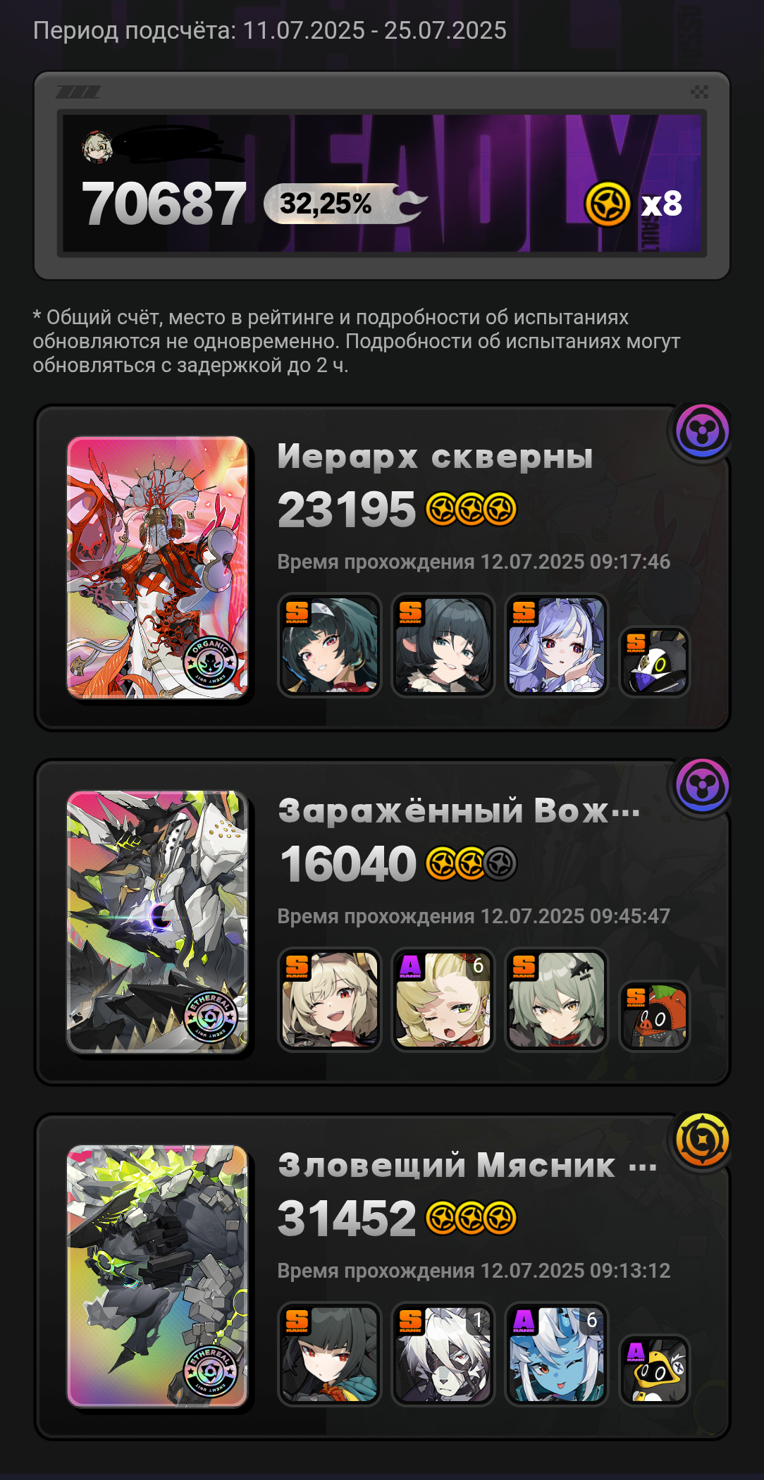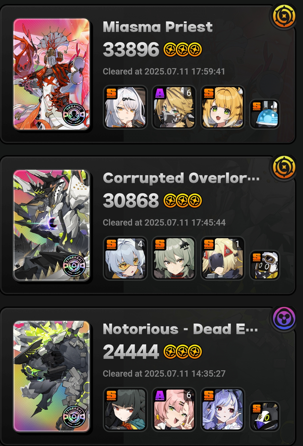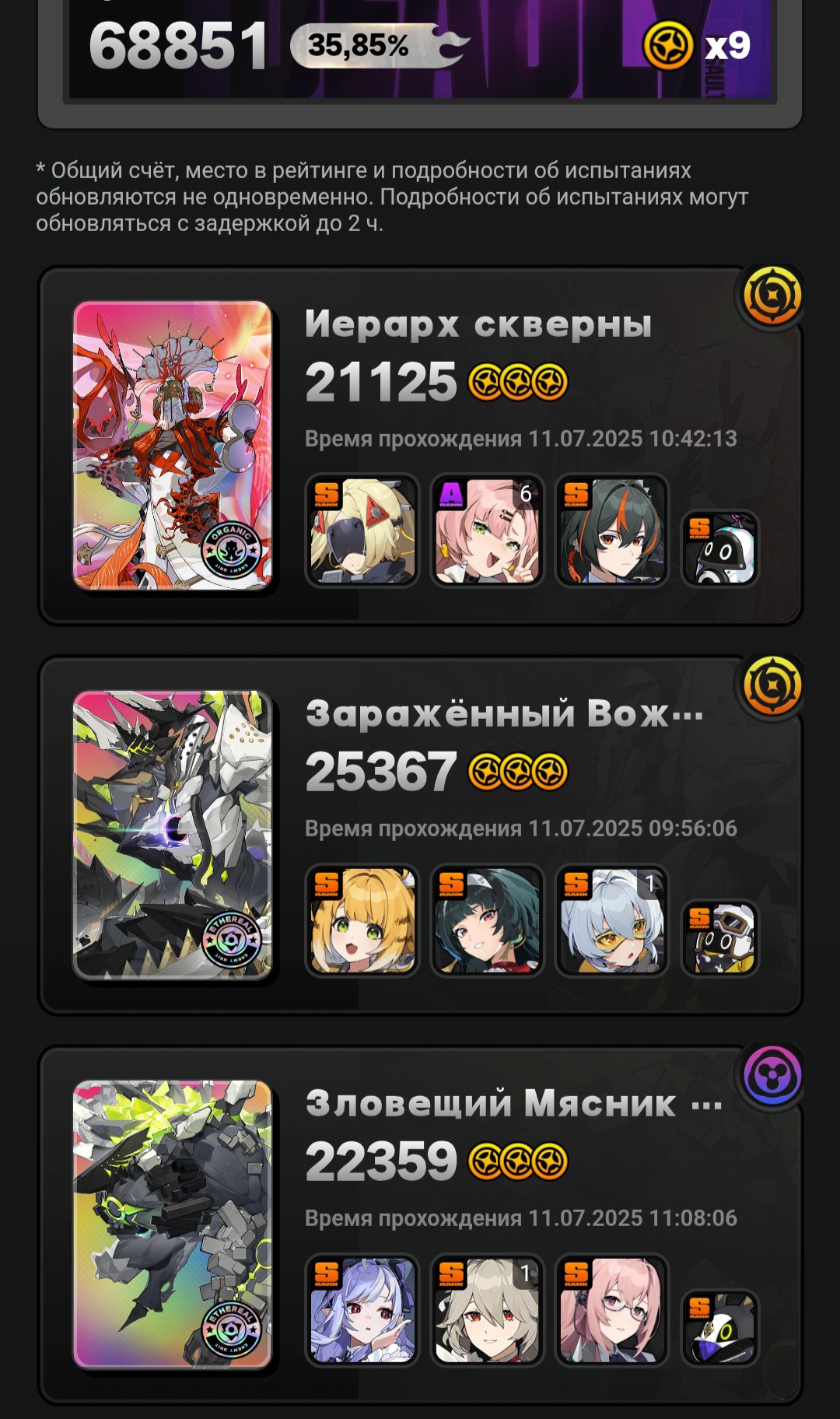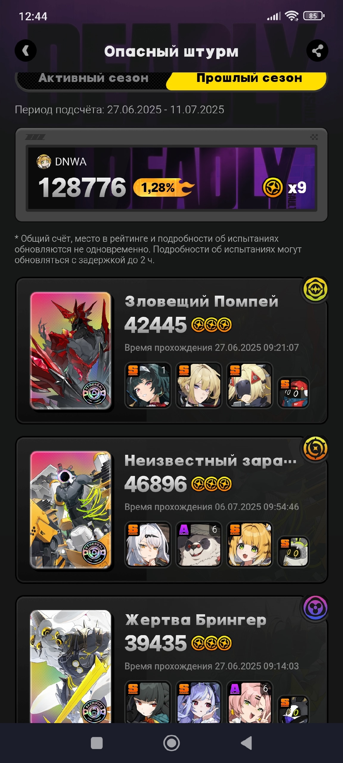 У меня только Мияби 3 звезды делает, остальные пачки до нее не дотягивают. Самое большое разочарование это Исюань, дамаг средний, а когда адреналин заканчивается, то лишь с руки остается бить.