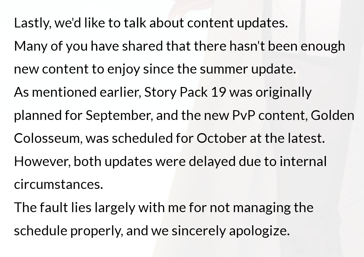 >>5863513 Да джон зачастил стримить, заебало если честно. Лучше спокойно сводку почитать: https://www.browndust2.com/en-us/news/view?id=9107 Новая глава. Какое-то пвп нескучное для китяр. Нормальная мамка пигстии. Можно наконец для интерактивных сцен голос выбирать и слушать корейские визги вместо тишины. Рераны. Какие-то новые костюмы. Стим. Всё, можно не смотреть.