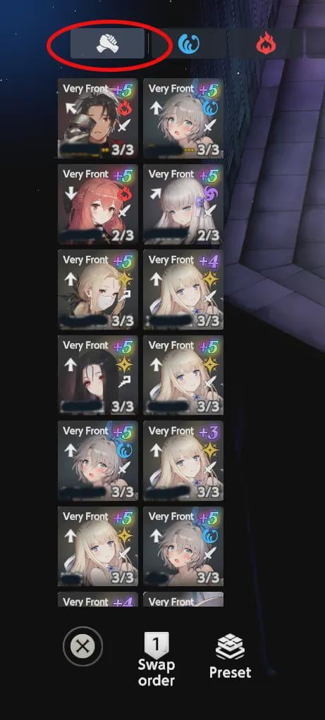 На порядок отряда не смотри - в бою я всегда подстраиваюсь так чтобы ваншотнуть пачку мобов, так что да, я знаю что бафферы сначала, потом дд, да и набрал я их ради скрина наобум.