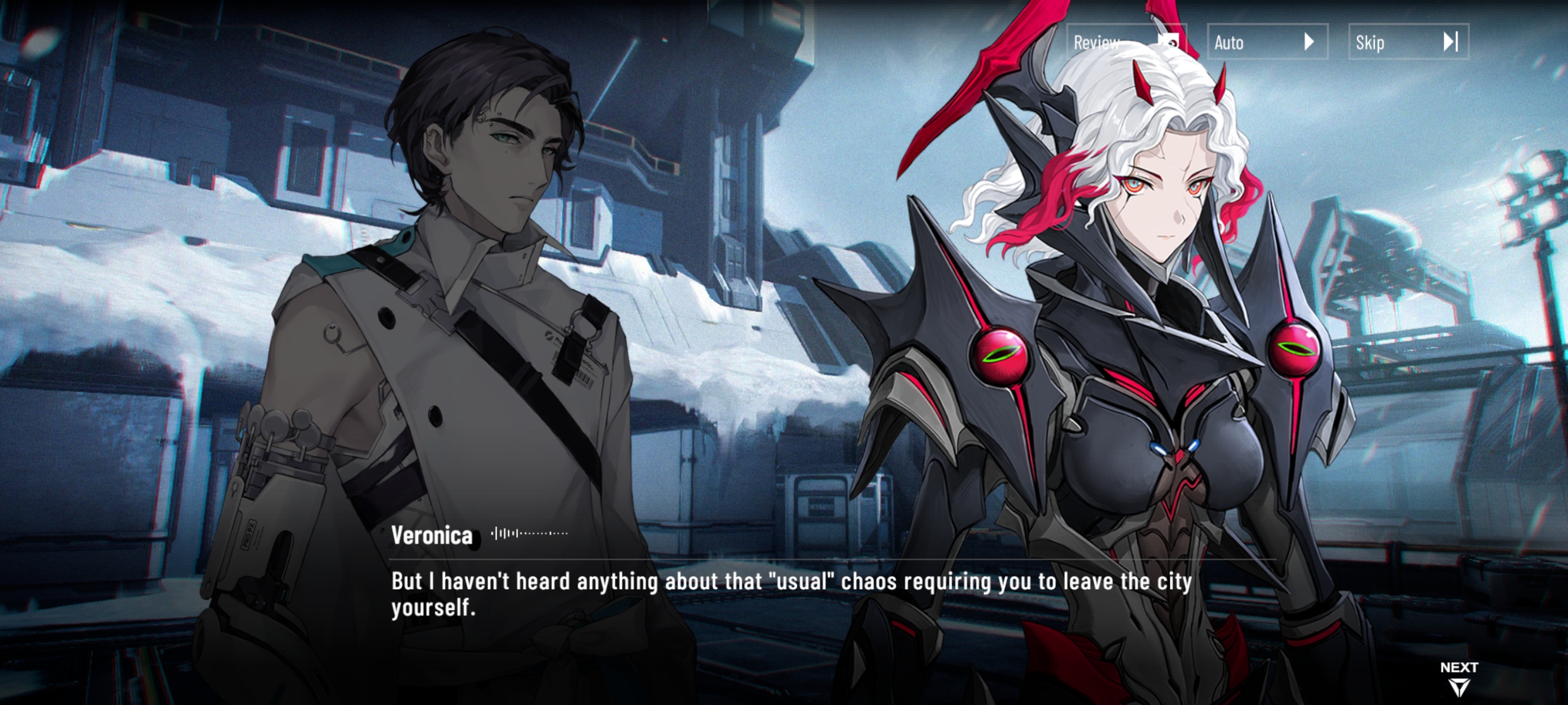 Член Черных Берегов (ЧЧБ): Ровер, у нас есть отчёт о состоянии Картефии. Ровер: Вы выяснили, что с ней случилось? ЧЧБ: К сожалению, пока нет. ЧЧБ: Поскольку этот случай беспрецедентен, нам потребуется больше времени, чтобы полностью разобраться в ее проблеме. Но мы уже кое-что выяснили. ЧЧБ: После слияния сил Сентинеля и Тренодиана, она подсознательно поглощает энергию вокруг себя всякий раз, когда использует свое форте. ЧЧБ: В прошлый раз она сражалась в Соноро Сфере, осквернённой Тёмным Приливом. Это может объяснить, почему она почувствовала, что его влияние становится всё сильнее. Ровер: Возможно, именно этого и добивались Фракцидус. Картефия: Я в порядке. Пожалуйста, не беспокойся обо мне. Картефия: Нет непреодолимых испытаний, если твоя воля сильна! ЧЧБ: Доверьтесь науке в поисках более простого решения, мисс Картефия. ЧЧБ: Пока что ей следует избегать использования своего форте. ЧЧБ: Судя по отправленным вами данным, башня Авинолеума может стать идеальным местом для её выздоровления. Ровер: Из-за Императора? ЧЧБ: Да. Формирование этой Сферы Соноро связано с Императором, что должно помочь стабилизировать энергию Картефии. ЧЧБ: Кроме того, во время предыдущего осмотра, Картефия снова почувствовала следы остаточной энергии Левиафана. Ровер: Опять? Картефия: Да. Это было похоже на ту силу, которую я ощущал, сражаясь с Мией. Картефия: Я не смогла определить источник, но, похоже, он находился где-то к югу от Чёрных берегов, глубоко под водой. Ровер: Нам нужно это проверить. ЧЧБ: Мы сужаем круг поиска. Как только мы определим точное местоположение, мы сразу же сообщим вам. Ровер: Я отправляюсь в путь прямо сейчас. Просто пришлите мне примерные координаты. ЧЧБ: Понял. Я сообщу нашему контактному лицу, чтобы он организовал для вас транспорт. ЧЧБ: Пожалуйста, будьте очень осторожны.