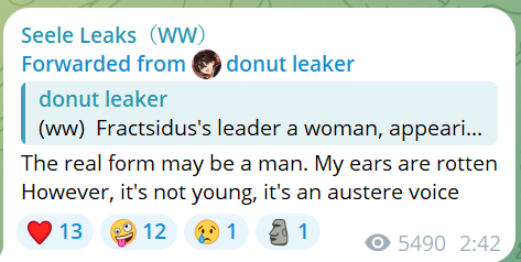 >>5273515 В начале 2.5 она на Шорах обследуется. Скорее всего, из-за того, что она нахваталась порчи Темного Прилива и Левиафану невероятно хуево (а ее происхождение с ним связано напрямую), ее невероятно колбасит и форте дестабилизируется. Поэтому ее пока что в разборках с рыбой точно не появится.
