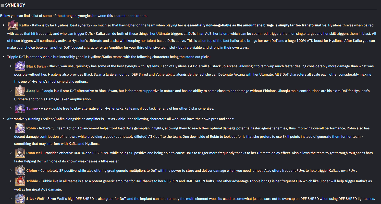 >>5411951 > Лебедь 2.0? Можно с Лебедью, можно без. Помогает разгонять для неё стаки, а для самой Гис без Е1 важно число дотов на врагах, а с Е1 она всё равно ещё лучше разгоняет стаки Лебеди. Может работать с Ахер, но вероятно без вау-результата. Е0С1 с Е0С1 Цифер и Е0 Гис на сигне Кафки (вообще я им мзхнул карточки с Циферой, но не суть) под Е1 Линшой закрывают у меня Сварога за 2 кукла.